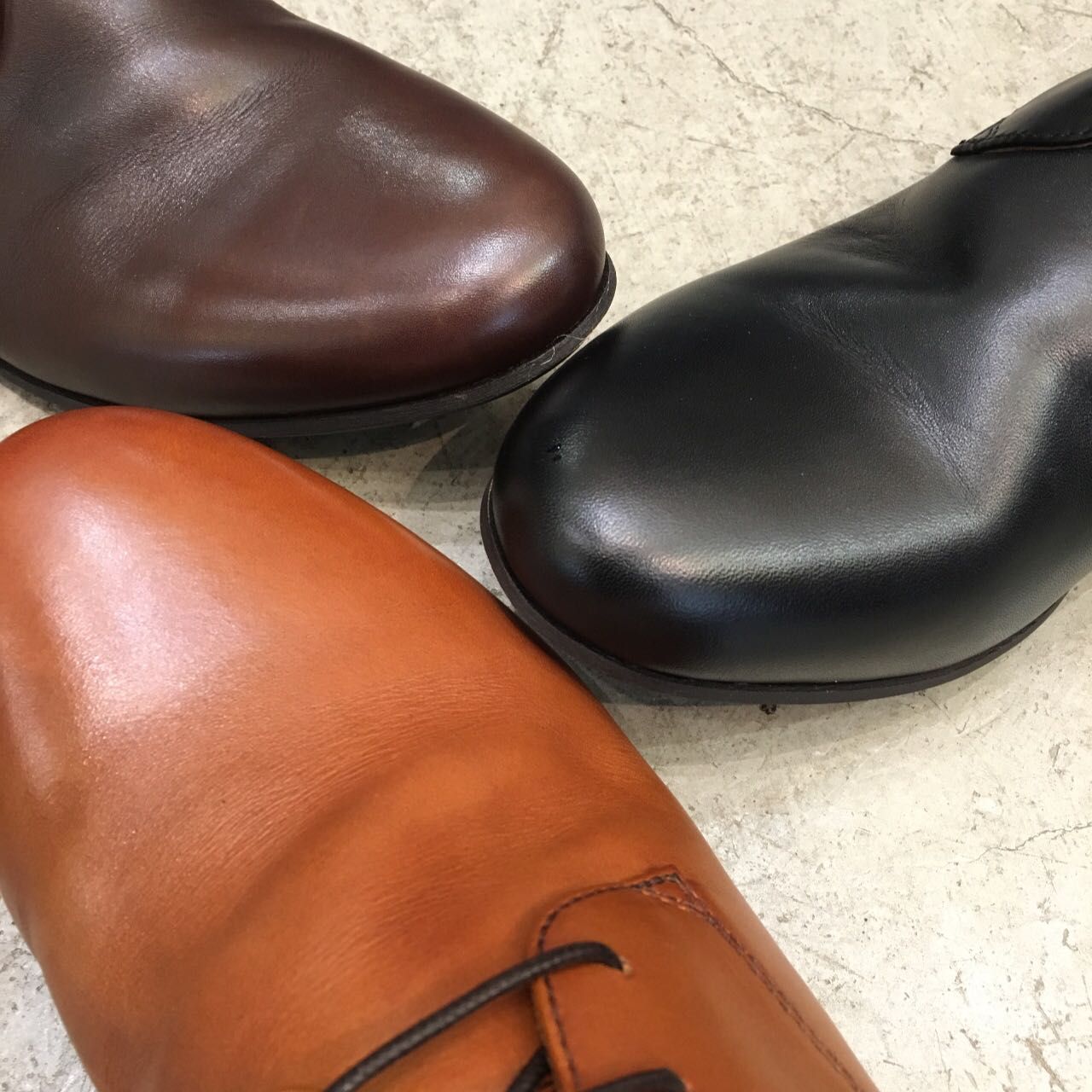 靴を作成した後にお湯に一足ずつ漬け込みシワ加工を施しております。