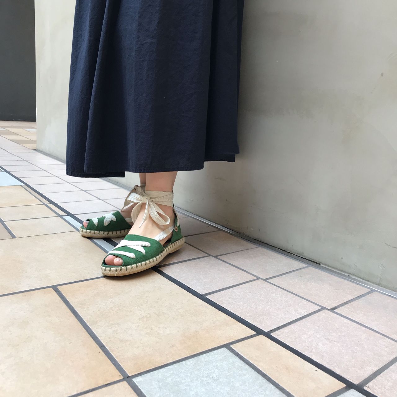 足首に巻き付けるレースアップサンダルです。