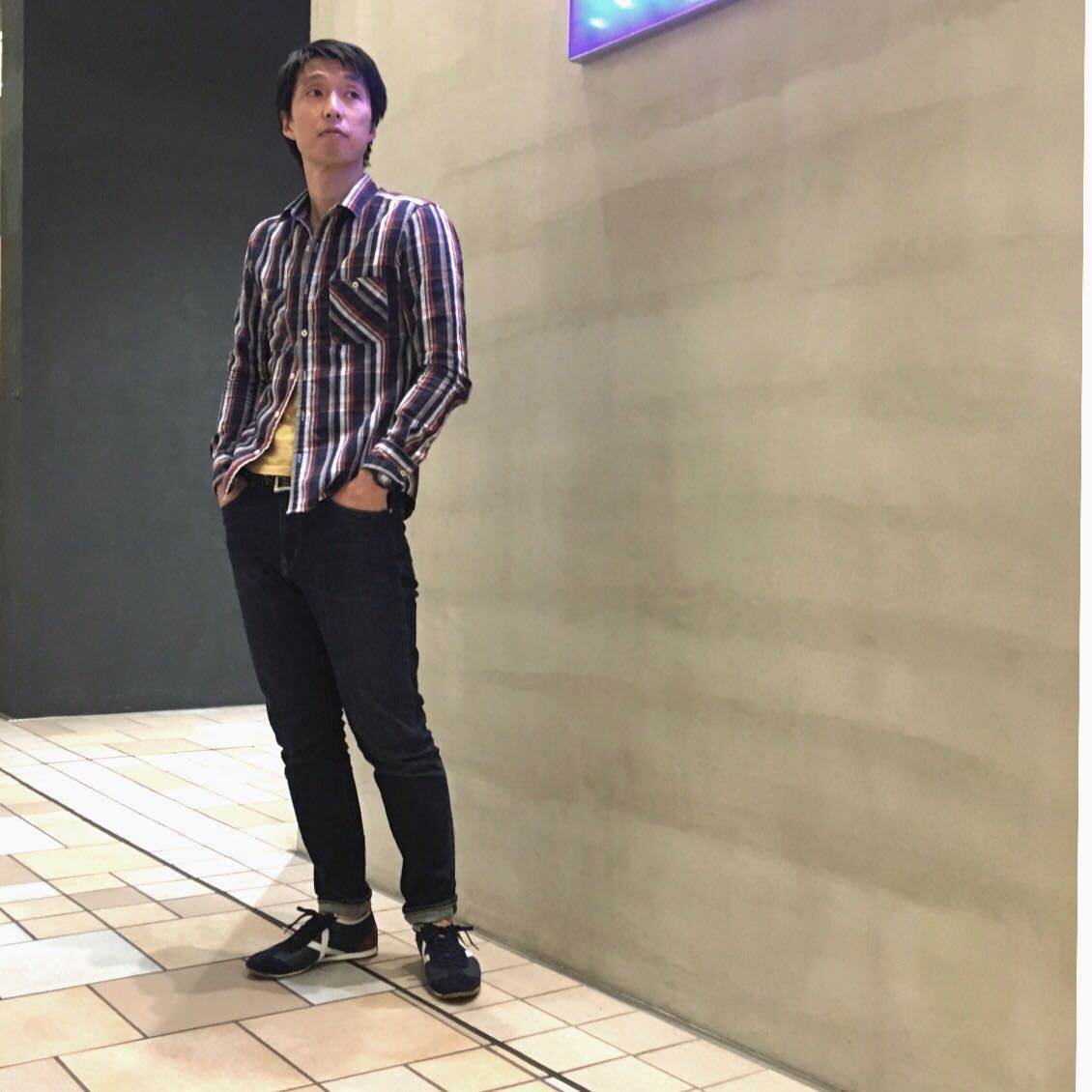 同系色のシャツにテーパードのデニムで合わせてみました。