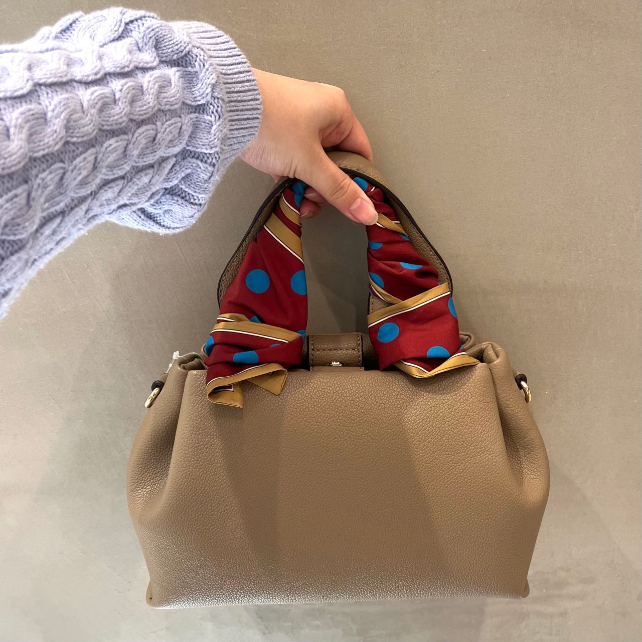 コロンとしたラウド型のシルエットがかわいいハンドバッグ。