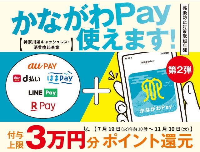 ※キャンペーンに関するお問い合わせはかながわPay 公式HPにてお願いいたします。