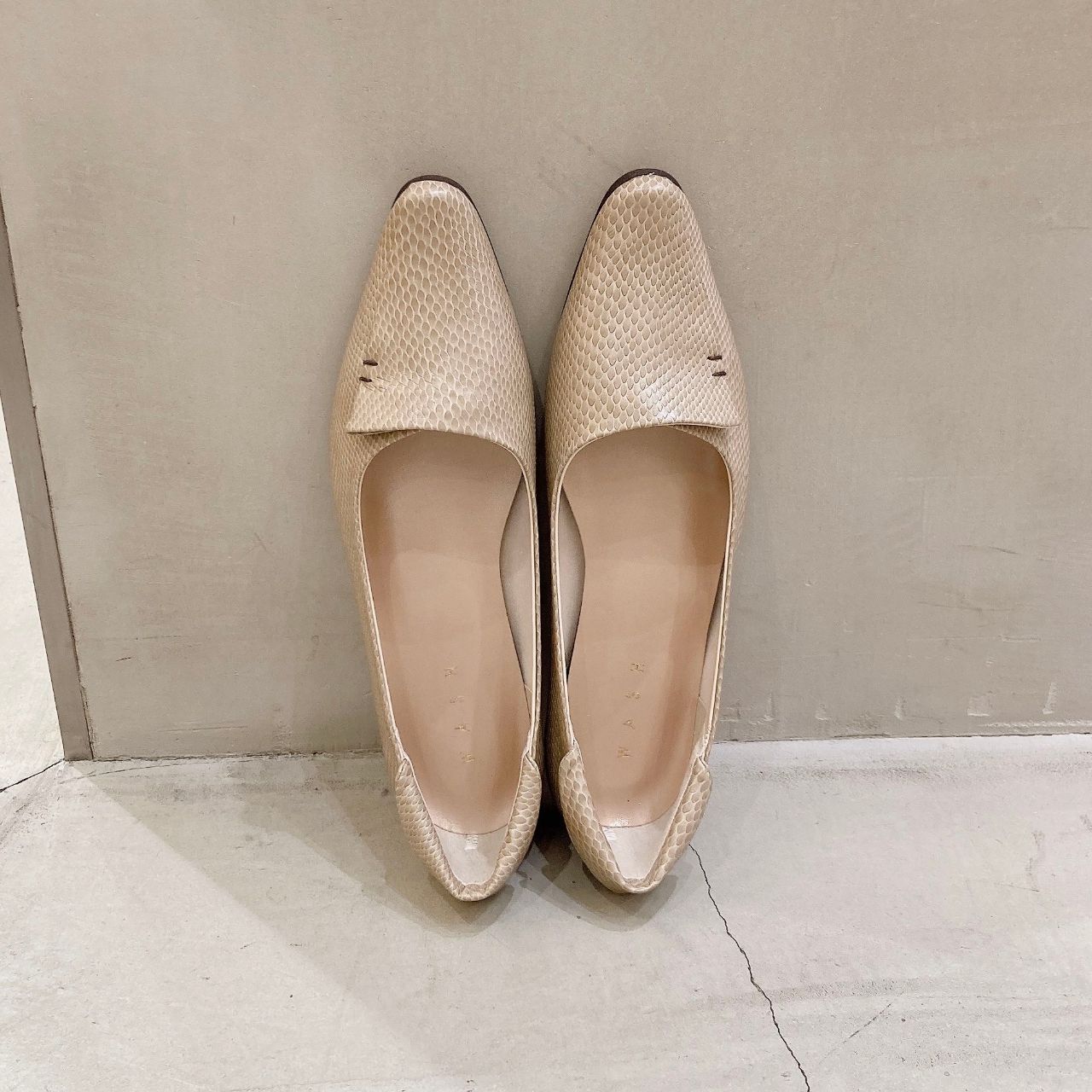 パイソンの型押しなので、シンプル過ぎず少しスパイスが加わった1足になっています!!