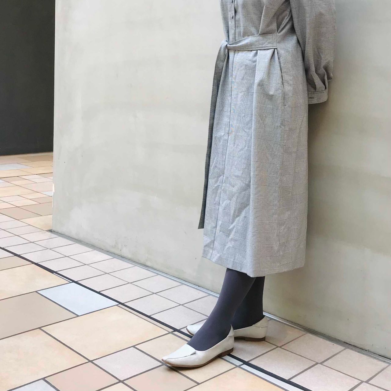 -暗くなりがちな足元にあえてソフトグレーのエナメル。