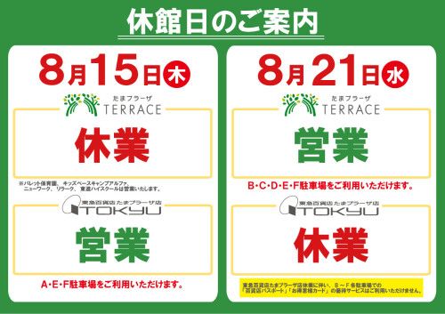 たまプラーザテラスの全館休業日です。