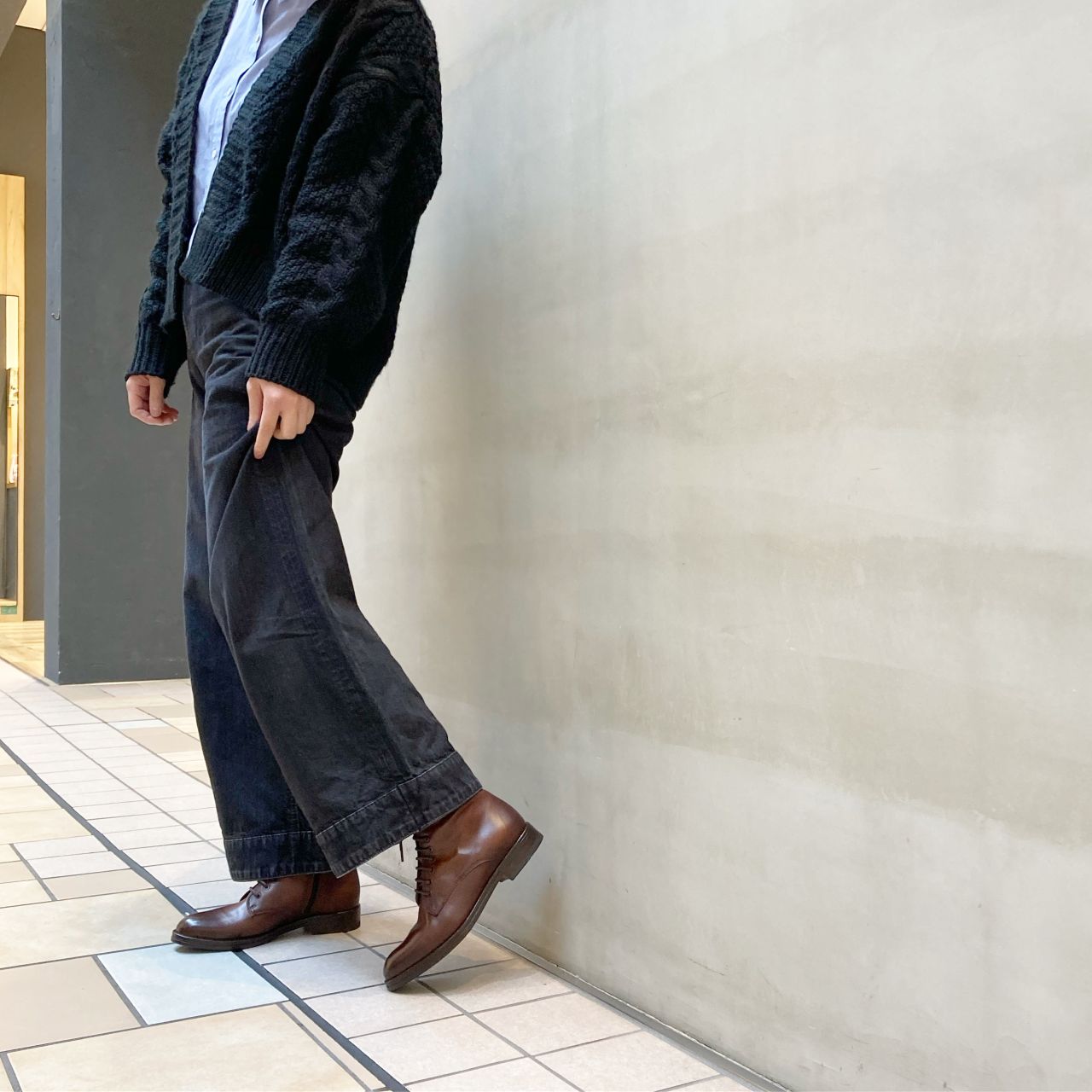 ワンピースやスカートにも合わせやすいです。