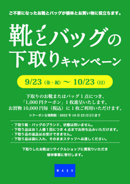 内容:下取りのお靴またはバッグ1点につき1000円クーポン1枚お渡し致します☆