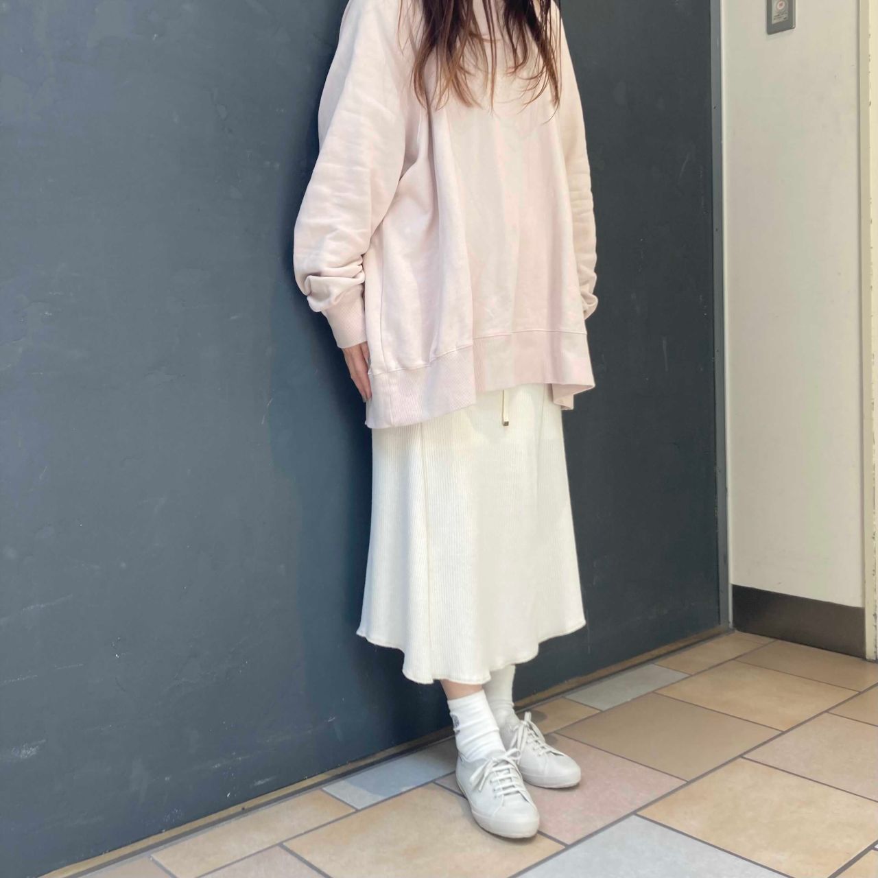 淡めのカラーが優しい雰囲気で、抜け感のあるコーディネートが完成します。