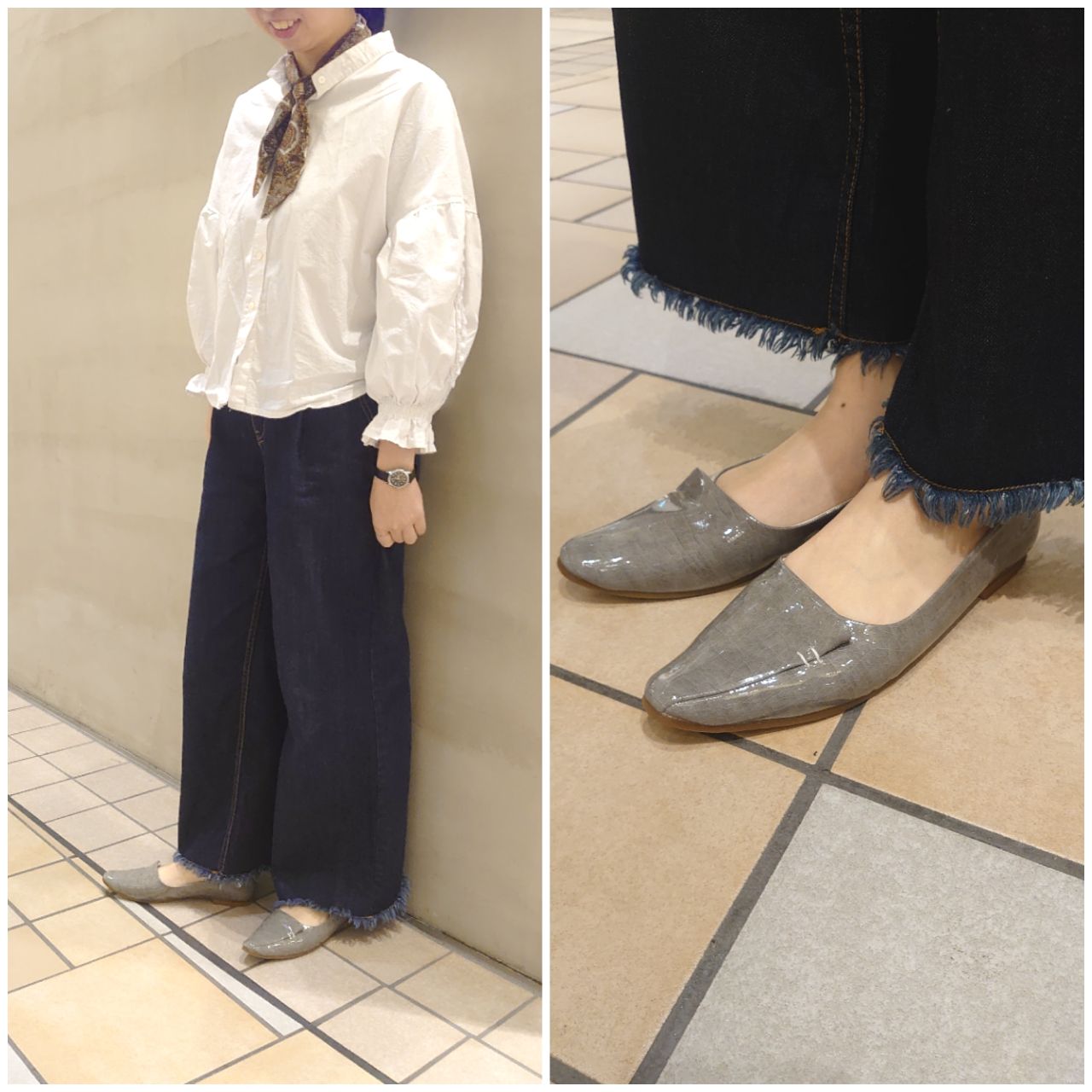 足元のグレーがスッキリとした印象に◎
