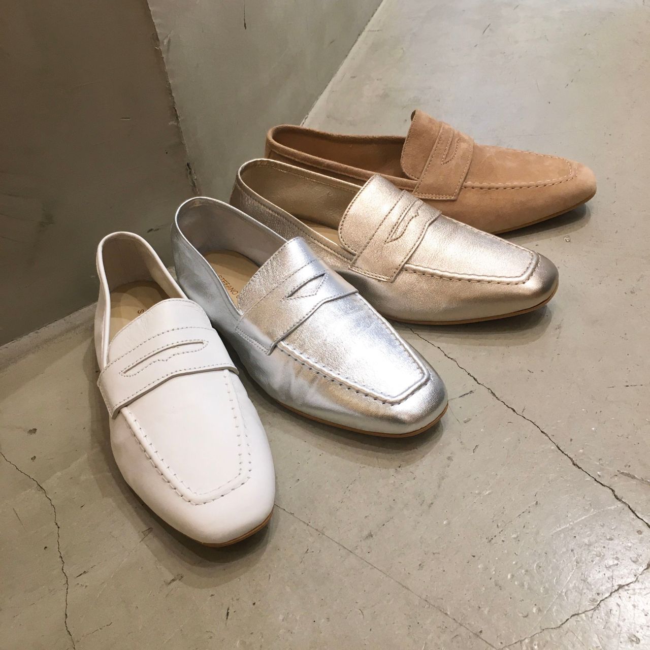 ソールが薄く、シルエットも華奢なのでメンズライクにならずに履ける、まさにイタリアらしい上品なローファーです。