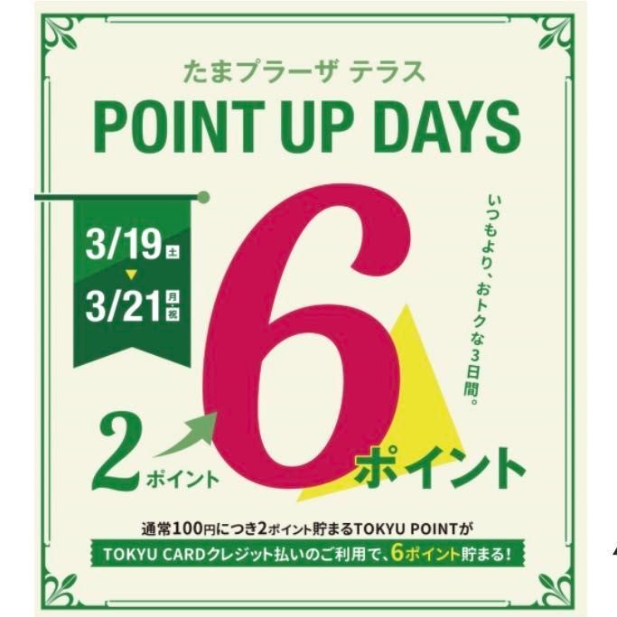 期間中、TOKYU CARDクレジット払いのご利用で、通常2ポイント貯まるTOKYU POINTが