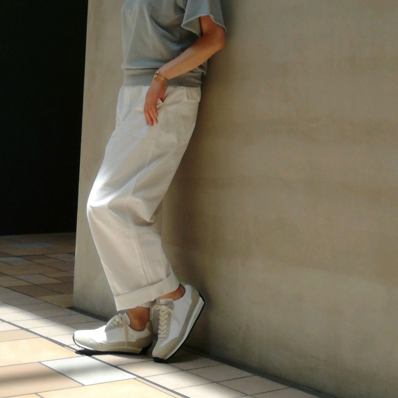 ソールのブラックが引き締めてくれるので甘すぎない雰囲気です。
