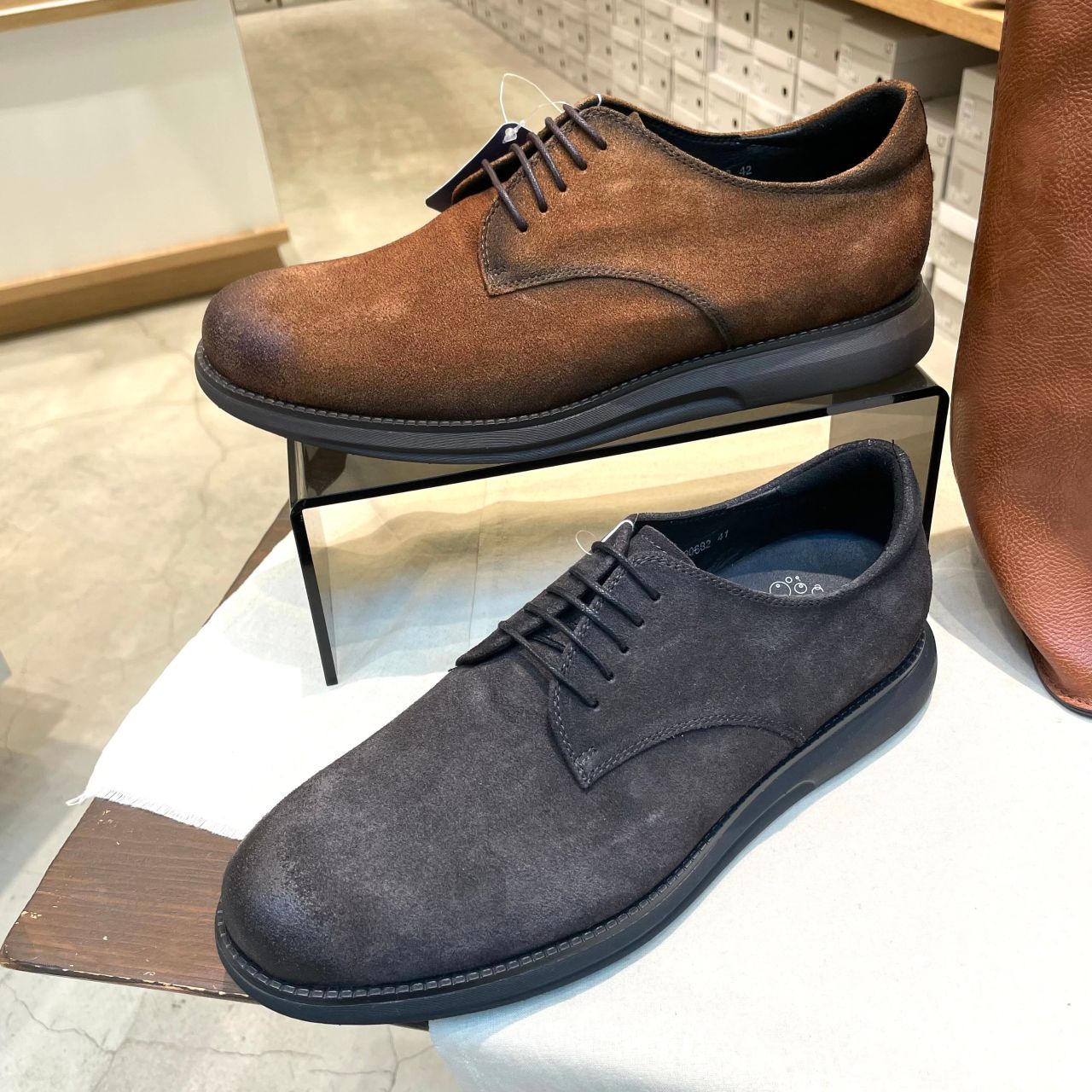 上質なスエードを使用したプレーントゥは、程よいフォーマルな印象を保ちながらも、スニーカータイプ同様、快適な履き心地を実現しています。