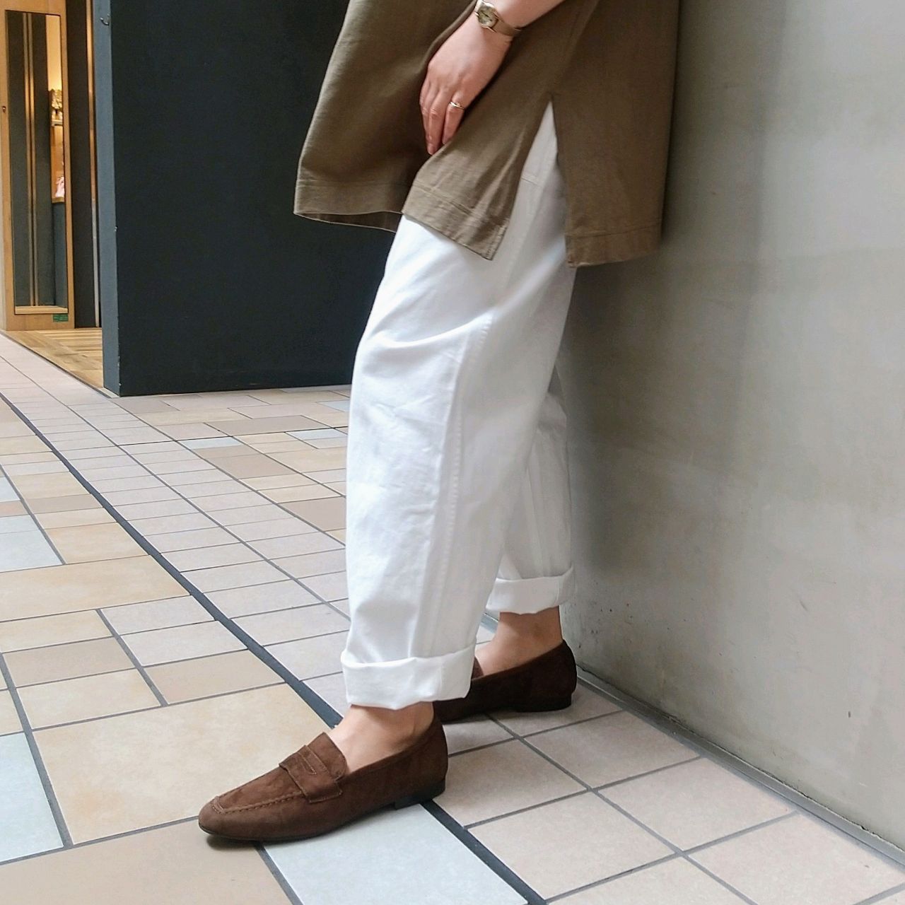 スッキリしたシルエットは、大人カジュアルにぴったりです。