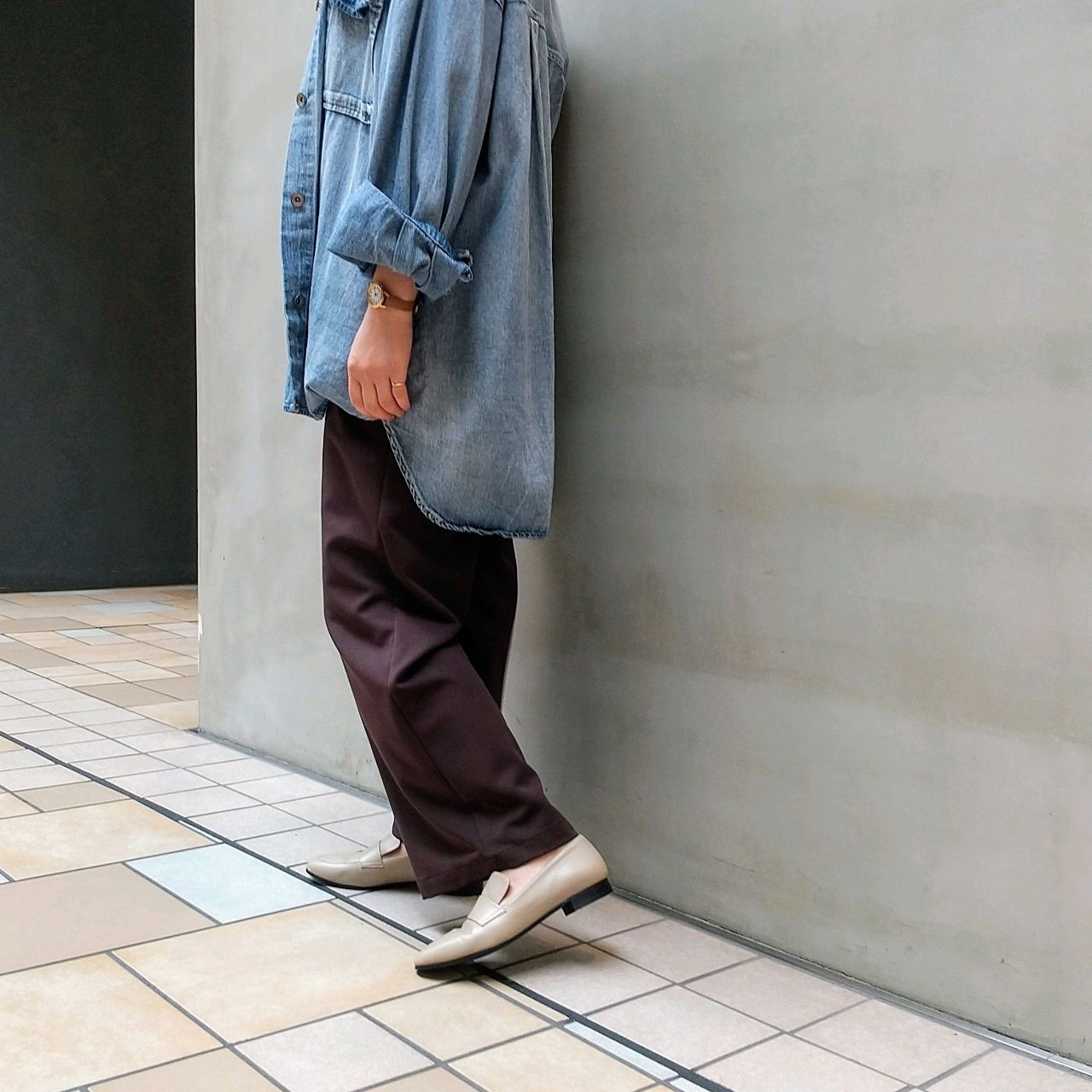 すっきりしたシルエットは、カジュアルなコーディネートを大人の足元に演出してくれます。