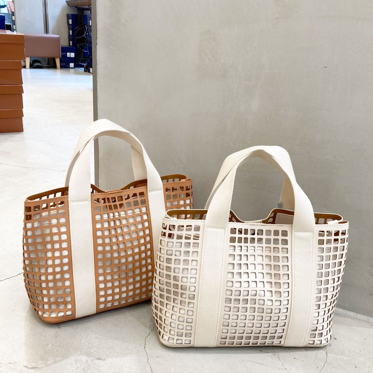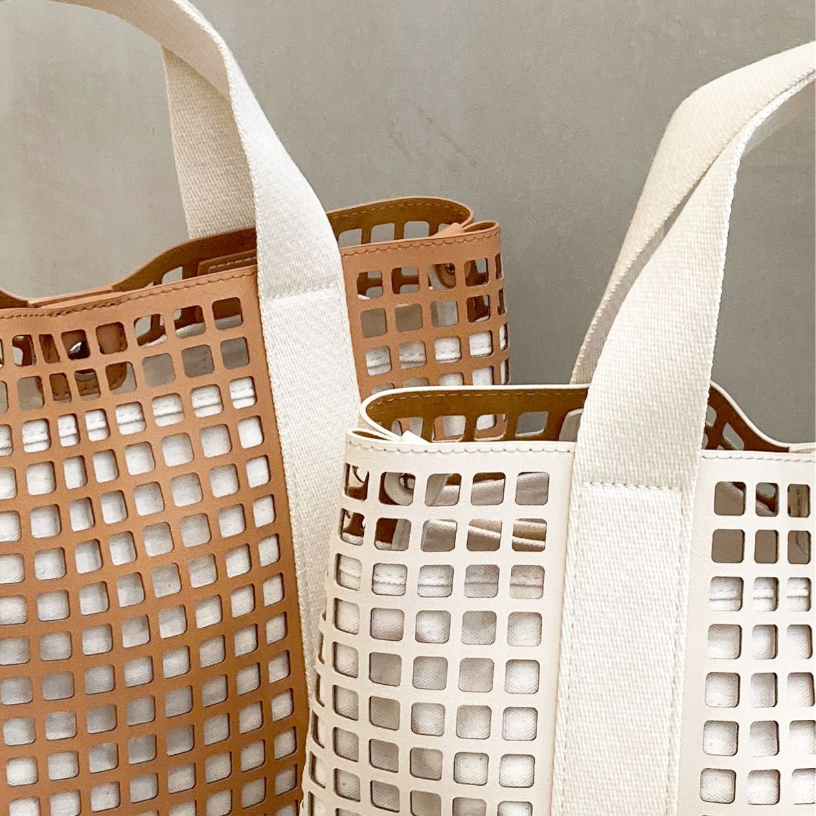 パンチング加工のハンドバッグです。