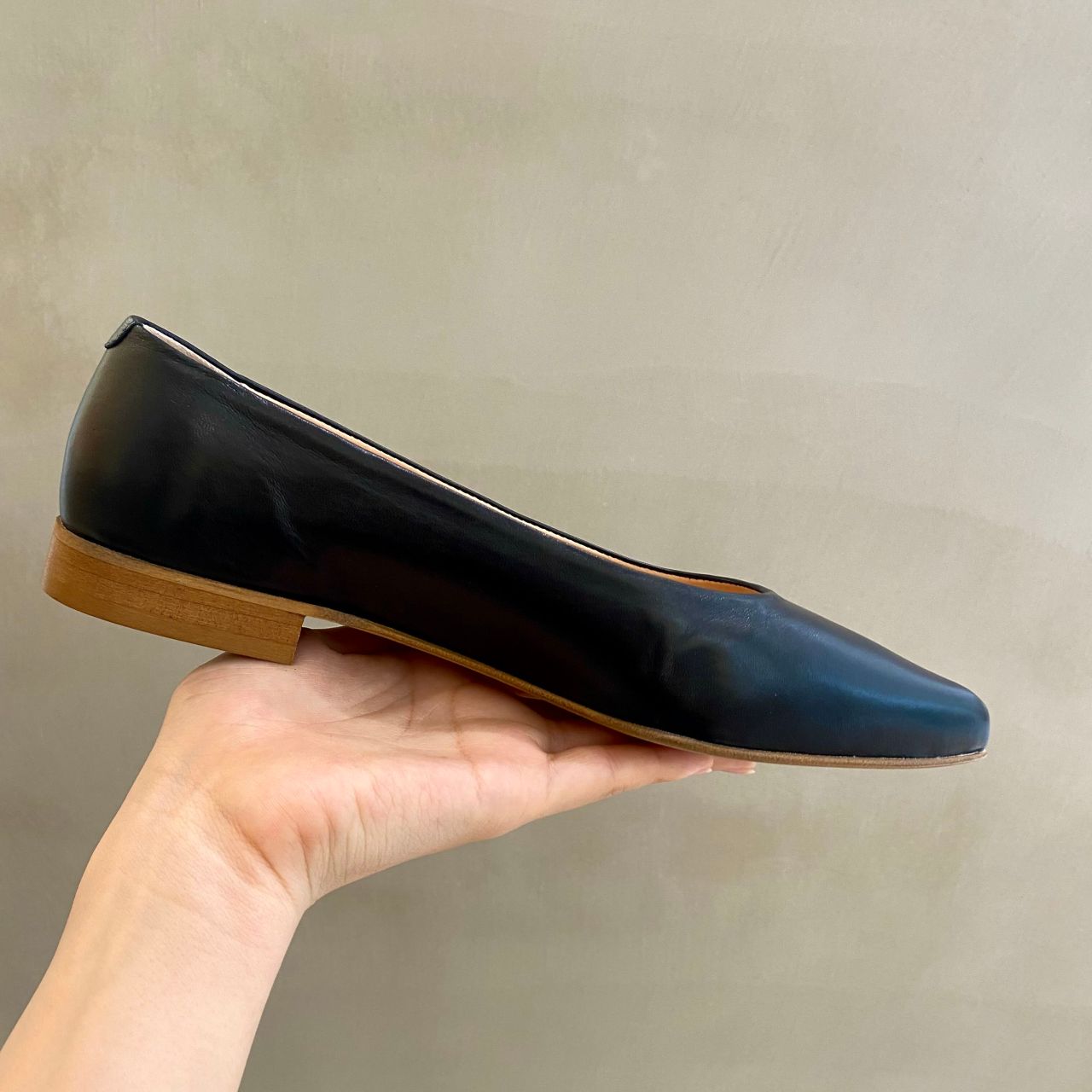 細めのポインテッドトゥがシャープな印象を与えながらもインソールのクッションと柔らかいレザーで