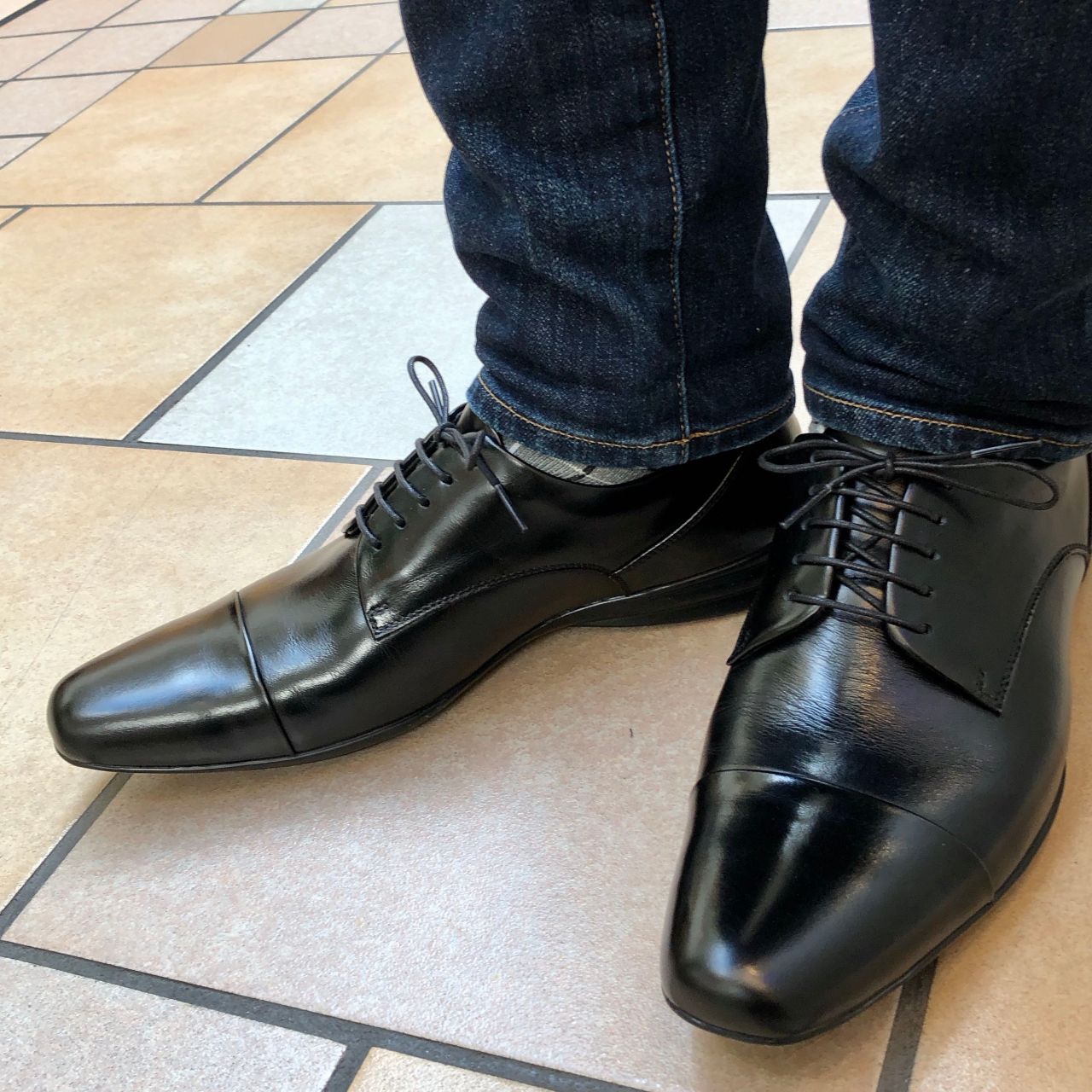 裾から覗く爪先は完全にドレスシューズそのもの。
