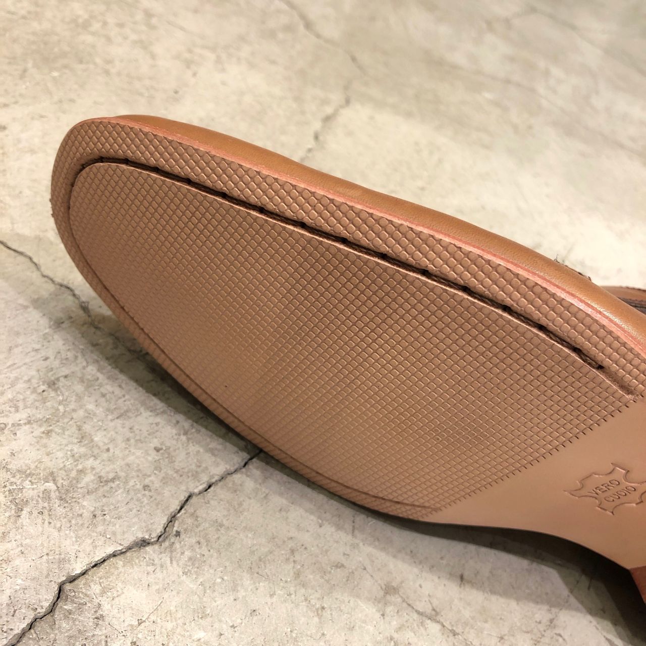 「VERO CUOIO」の刻印に象徴される本物のレザーソール。