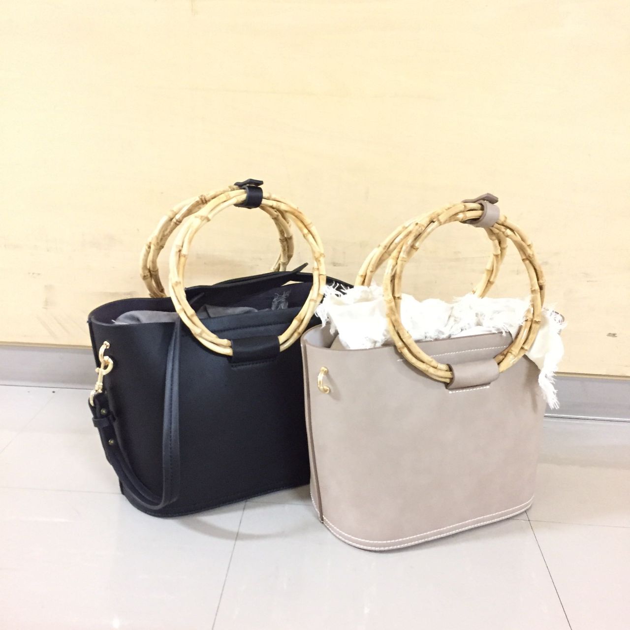 持ち手がバンブー素材で夏っぽさをプラスしたデザインです。