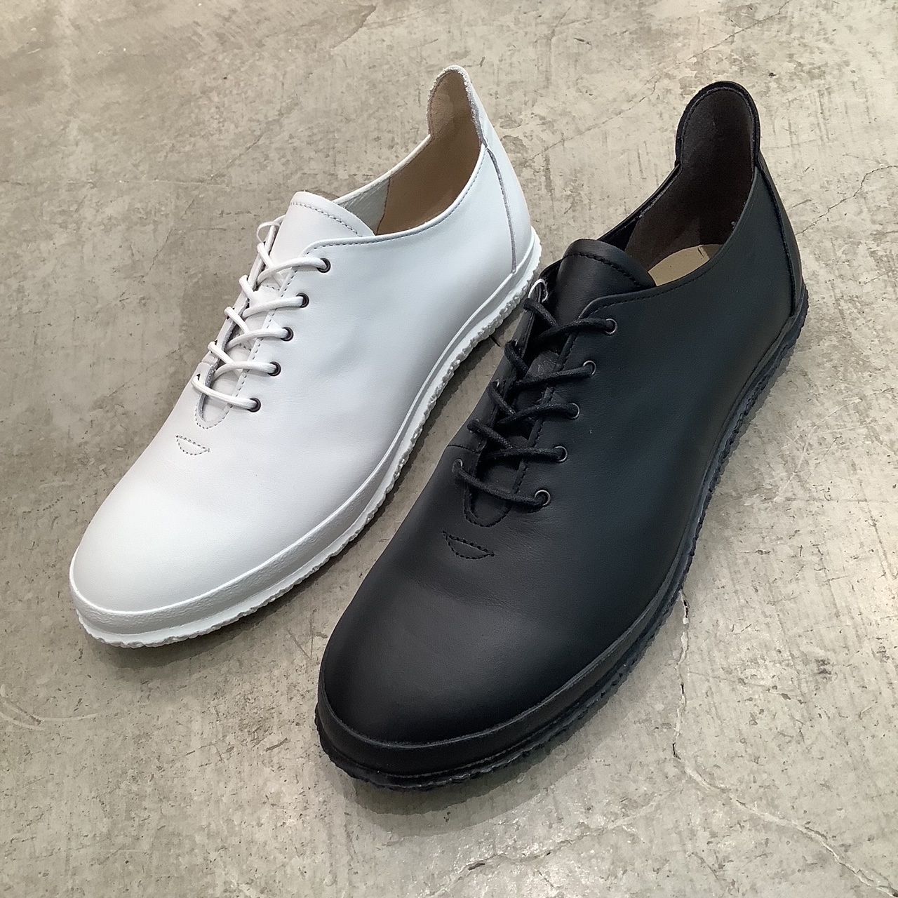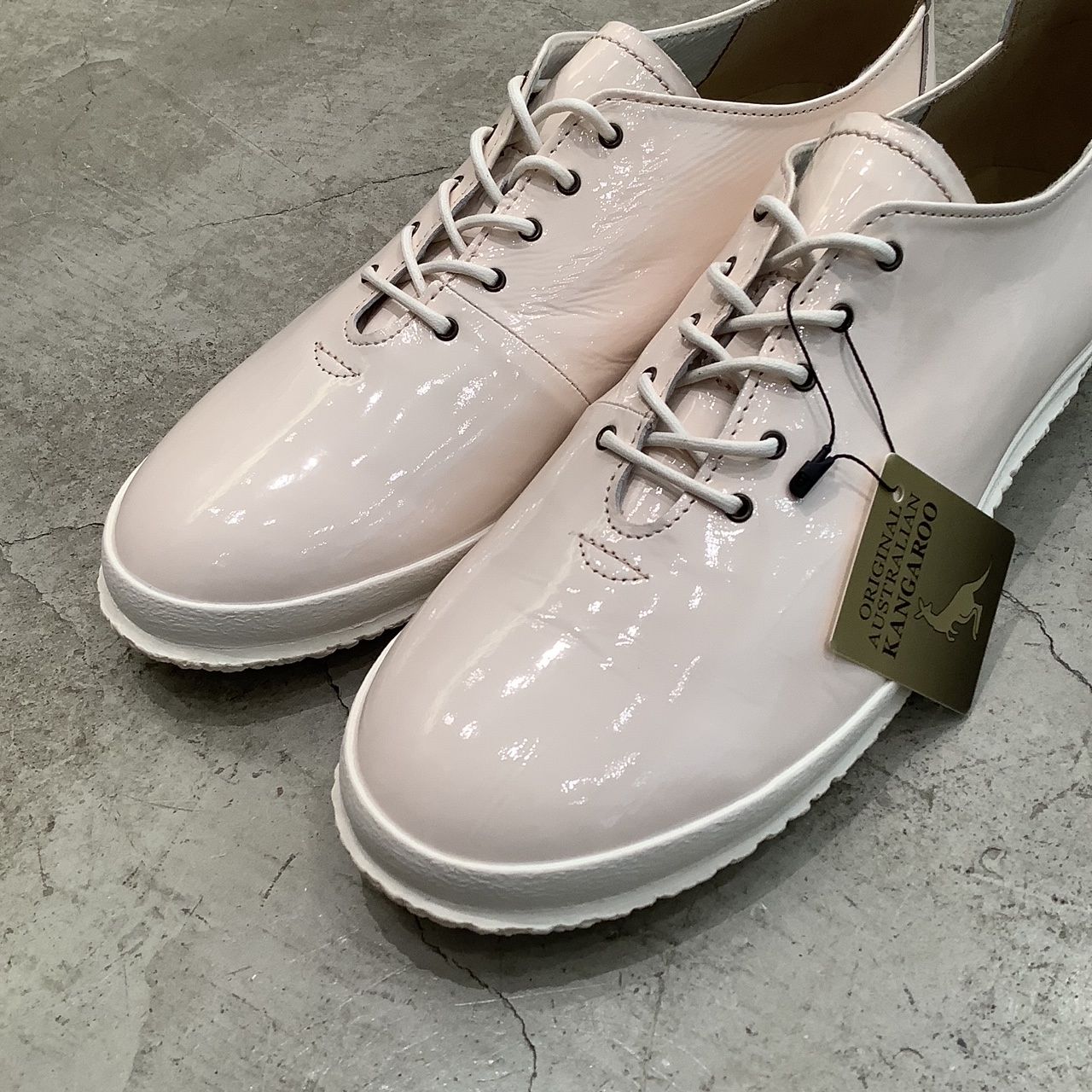 カンガルーレザーにエナメル加工を施したフラットシューズで、足当たりは柔らかく、踵周りはホールド感があります。SPINGLEの特徴でもある、カンガルーレザーは柔らかさ・軽さ・丈夫さを兼ね備えてサッカーのスパイクにも使用されるほどのレザーです。また、ライニングには吸湿速乾性・耐摩耗性に優れた機能性素材を用いています。