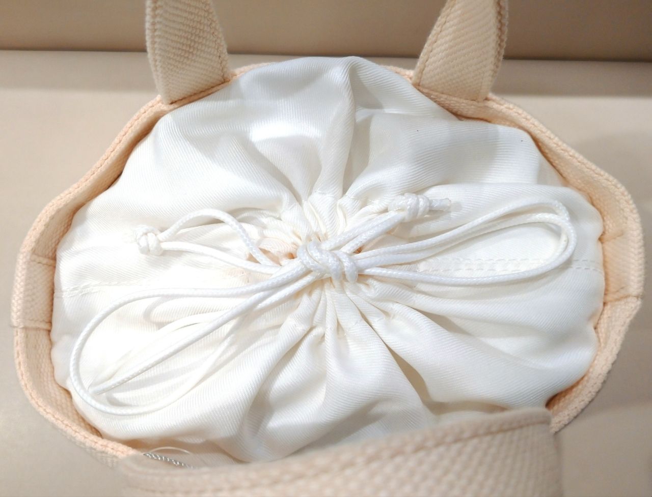 口は巾着風になっていて、物がこぼれないため安心です。