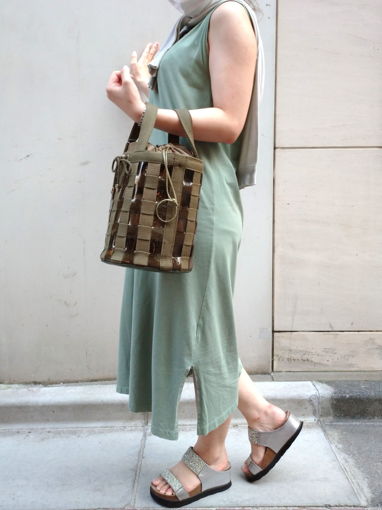 メッシュ生地とクリア素材のコンビネーションが、涼し気なバッグです。