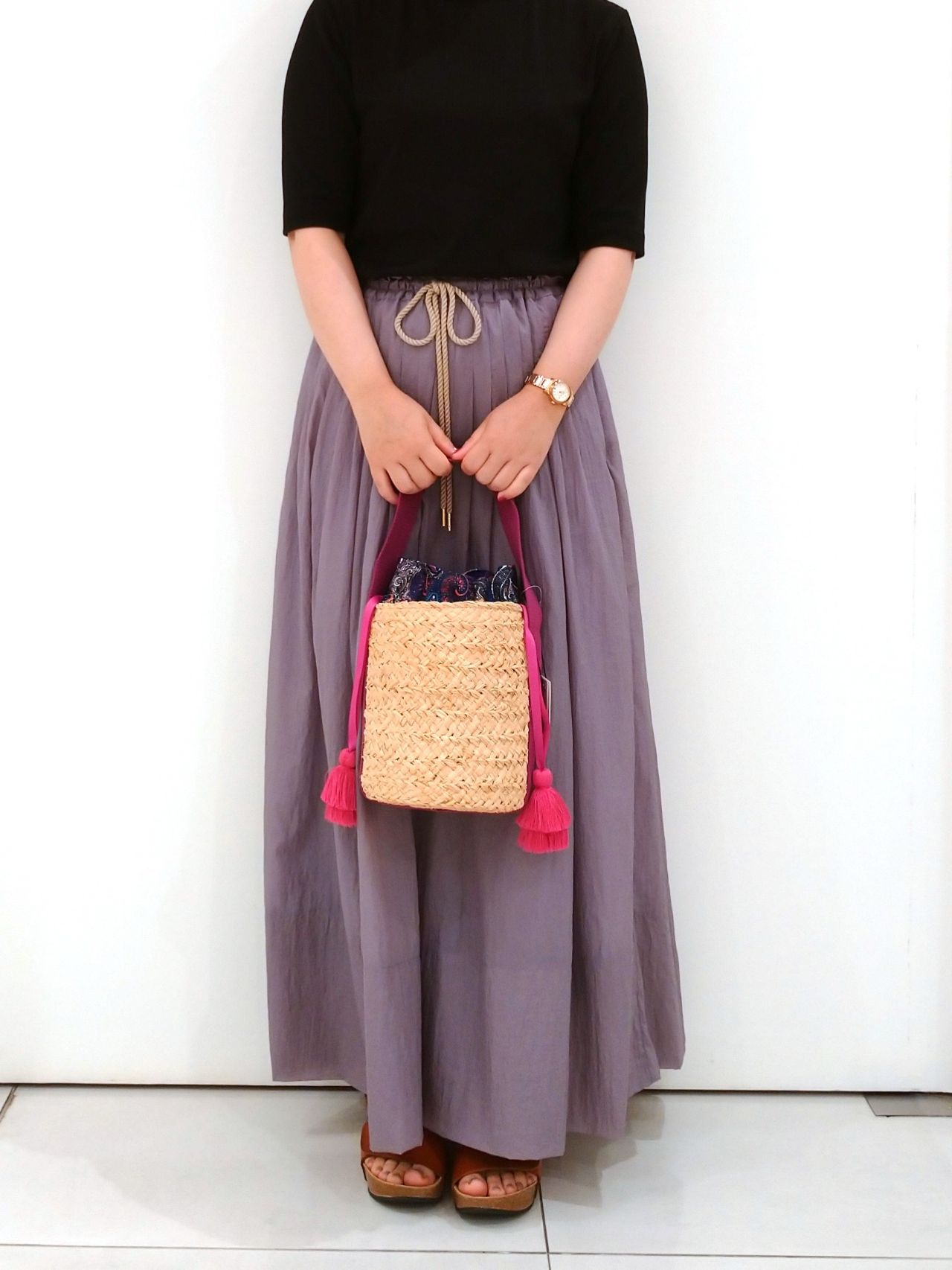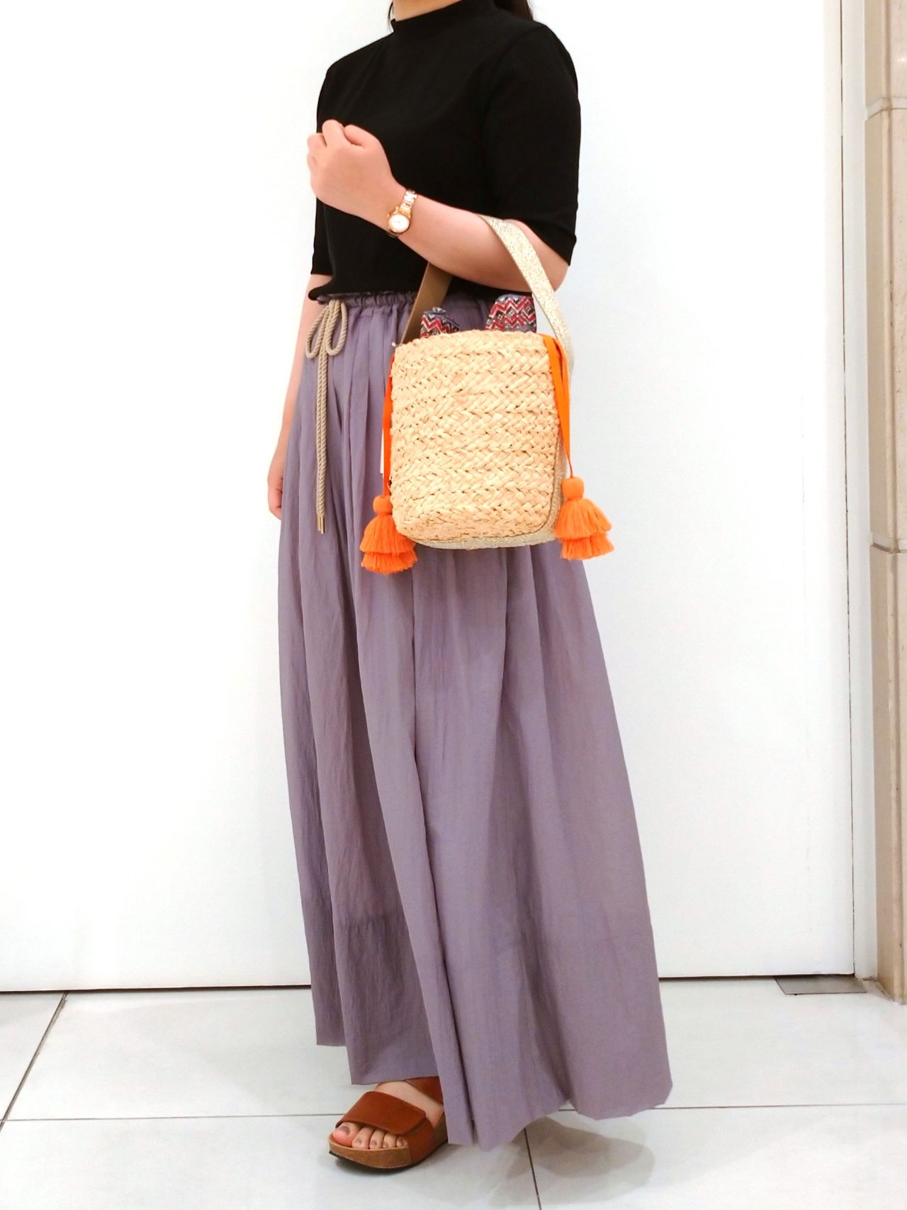 シンプルなバケツ型と差し色の取っ手が可愛いバッグです。