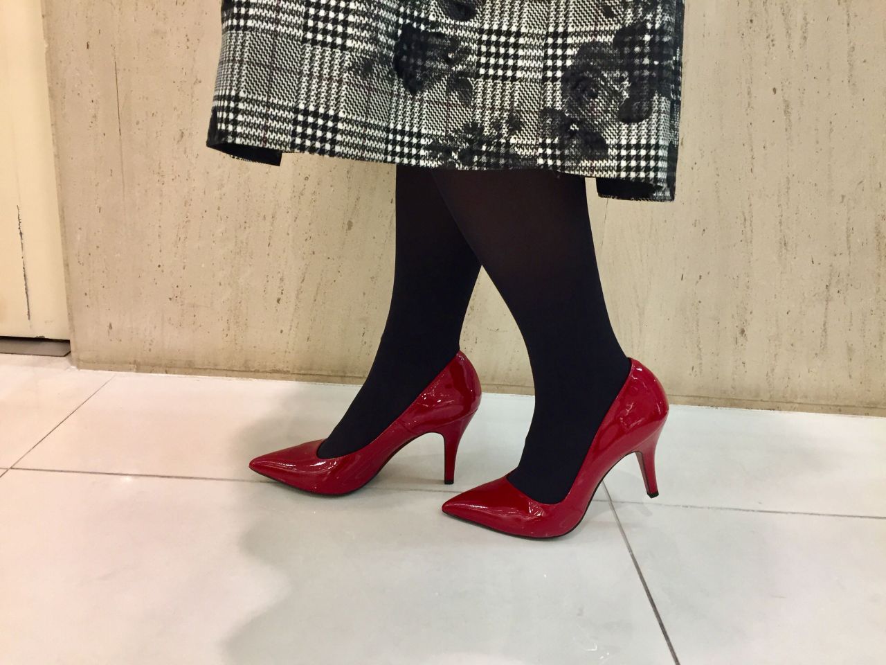 スタッフにレッドエナメルを履いて頂きました♪