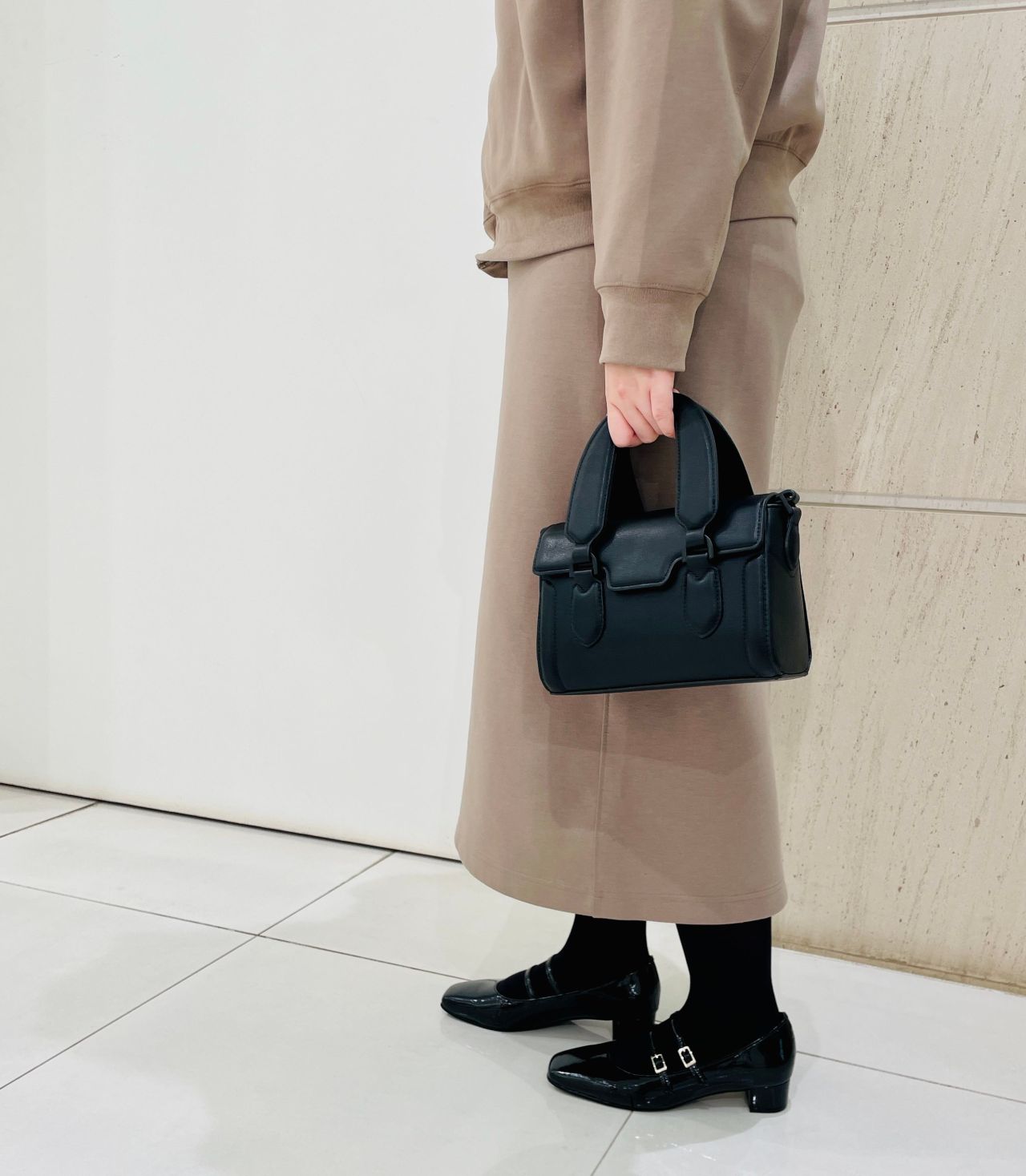まだ寒い今の時期は黒タイツと合わせると