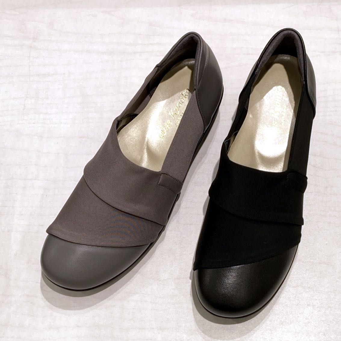 数年前に一度取り扱いのあった、撥水タイプのスリッポンが再入荷しました。つま先とかかとの切り替え部分は牛革、甲とサイドはストレッチ素材です。ブラックとグレージュの2色です。