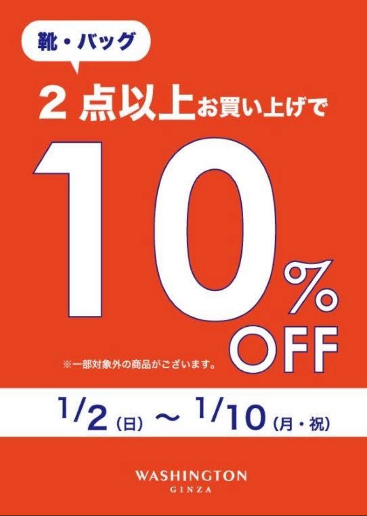 靴・バッグ2点以上のお買い上げで、レジにてさらに10%OFFとなります。