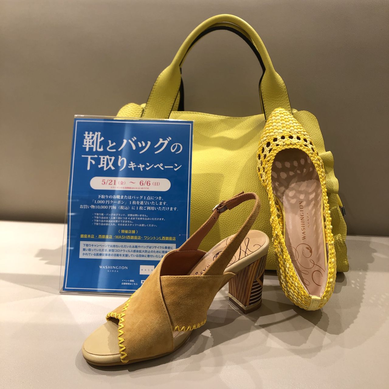 銀座ワシントンでは、店舗限定で『靴とバッグの下取りキャンペーン』を開催いたします。