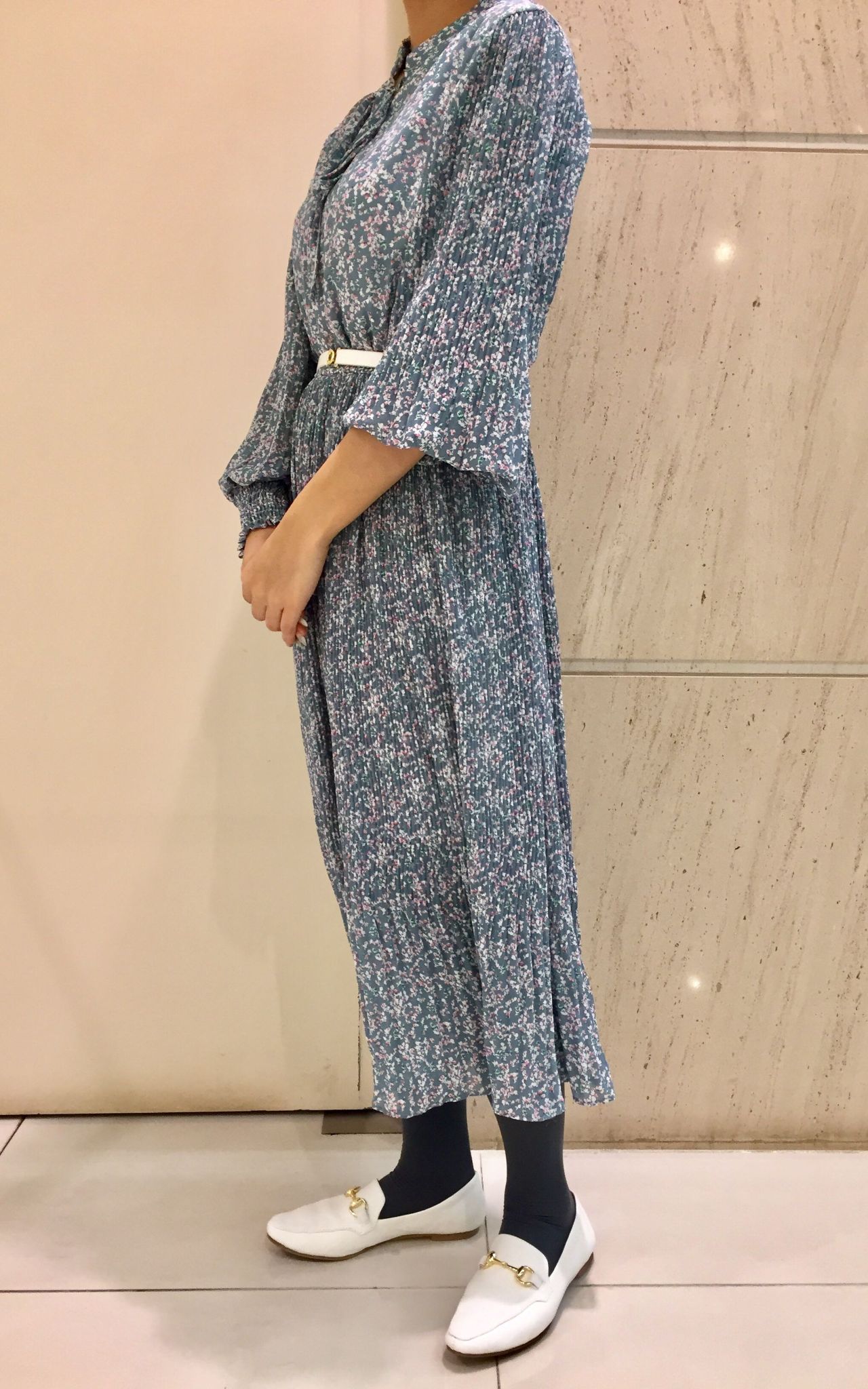 今の時期でしたらグレーのタイツと合わせて頂くと白が浮かずにコーディネートがまとまりますよ!
