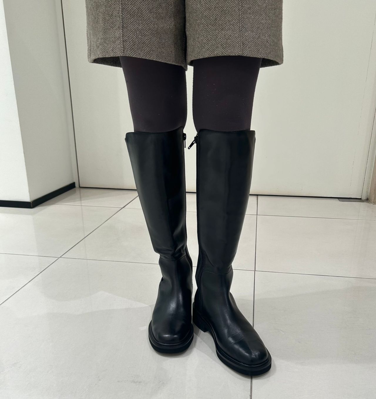 本日ご紹介するこちらのAPOMのブーツは、足の動きに合わせてフィットするので、快適に履いていただけるロングブーツです!