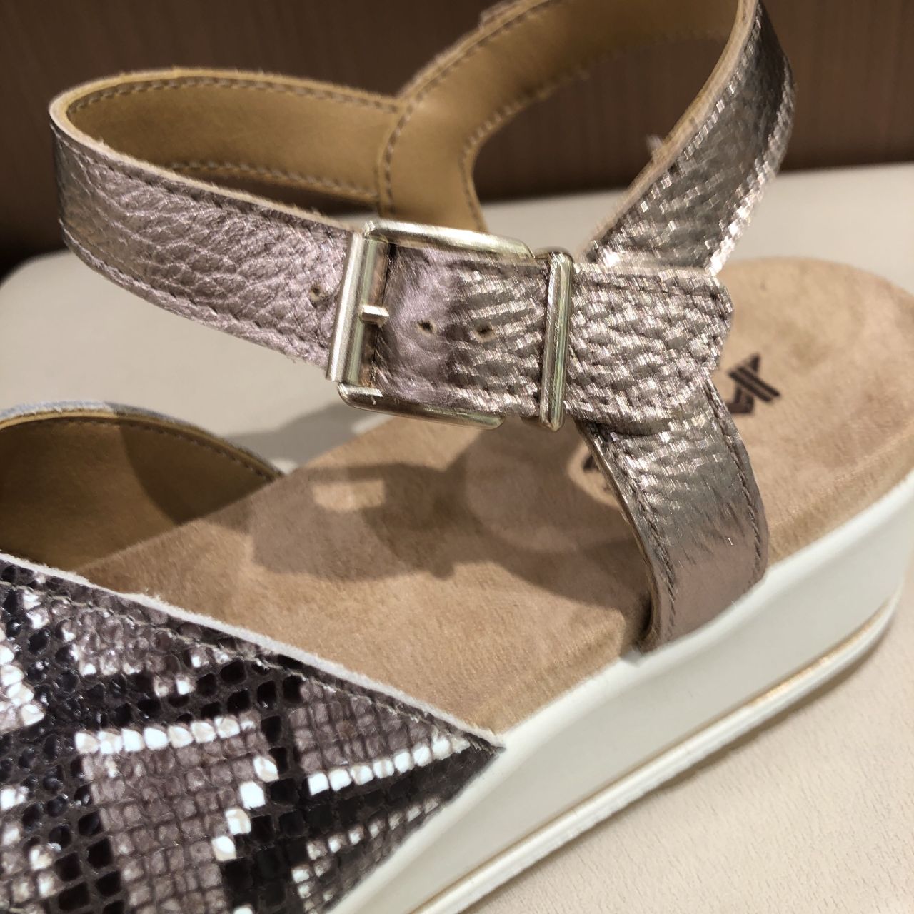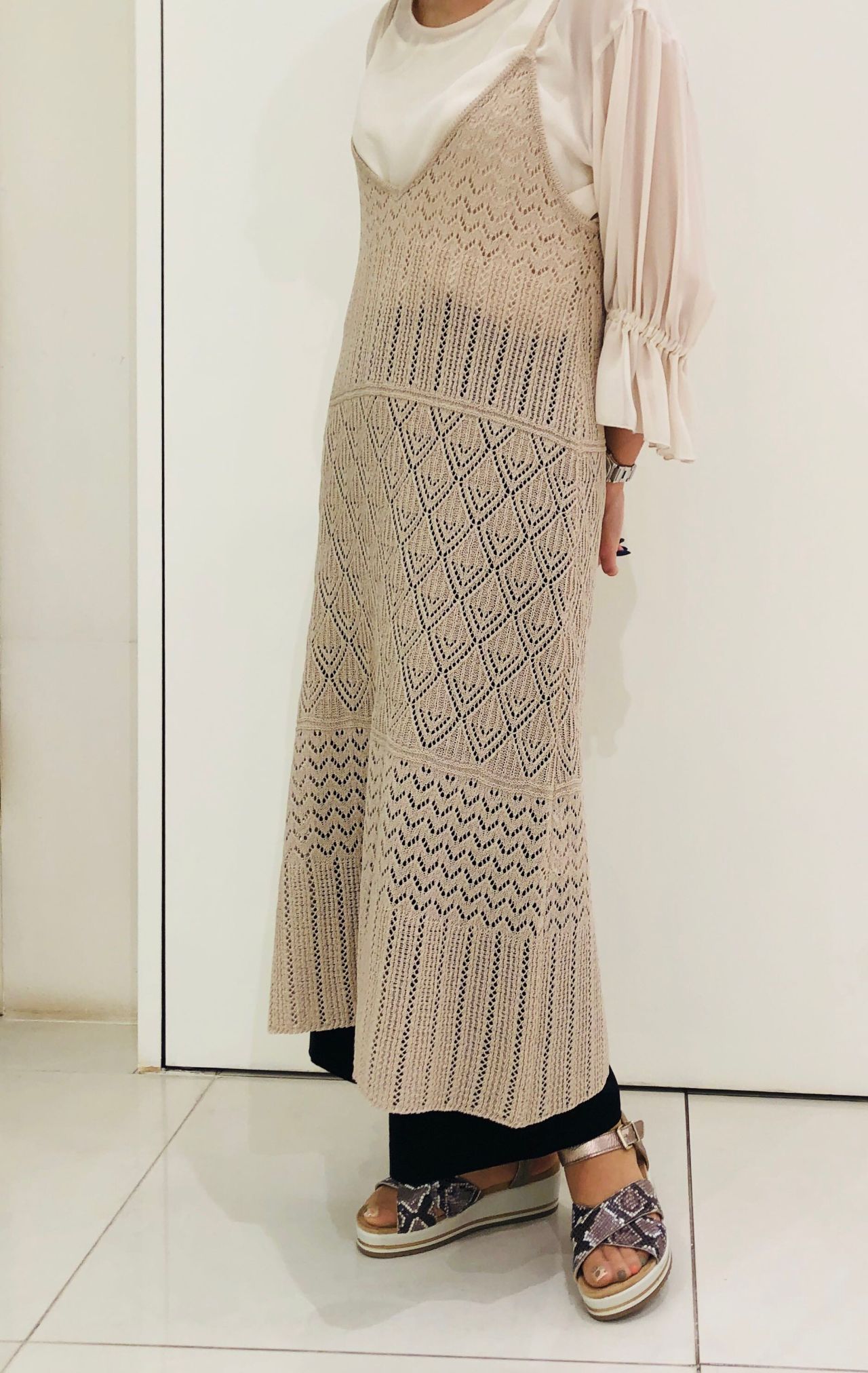 パイソンをかぎ編みジャンパースカートと合わせて。きれいめナチュラルスタイルにもバッチリです!