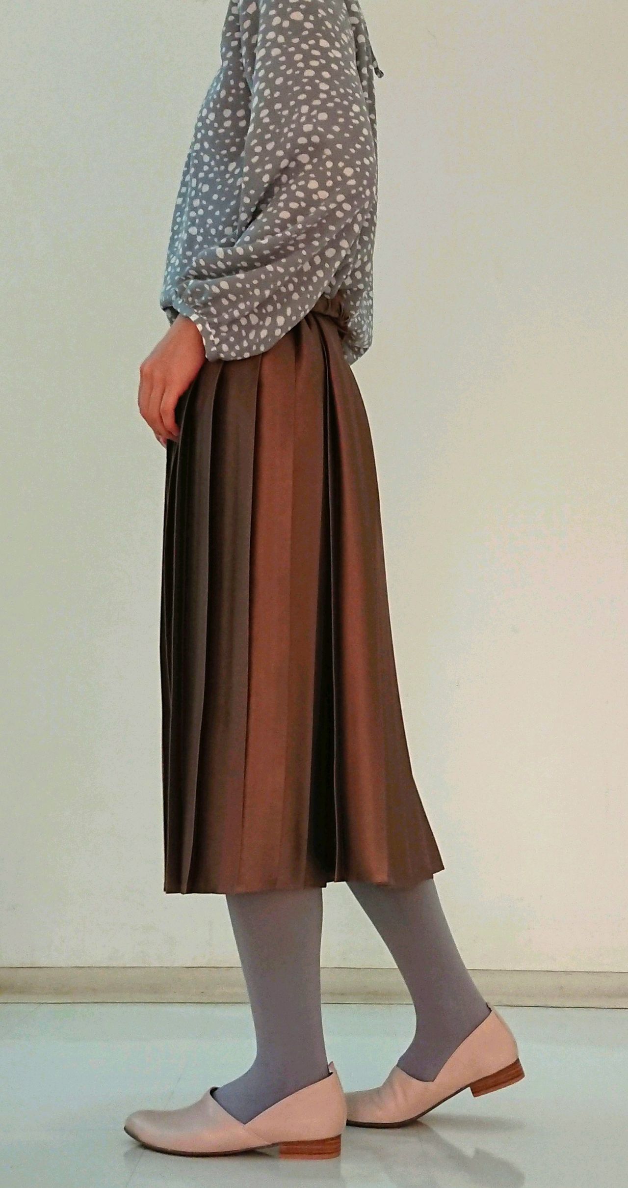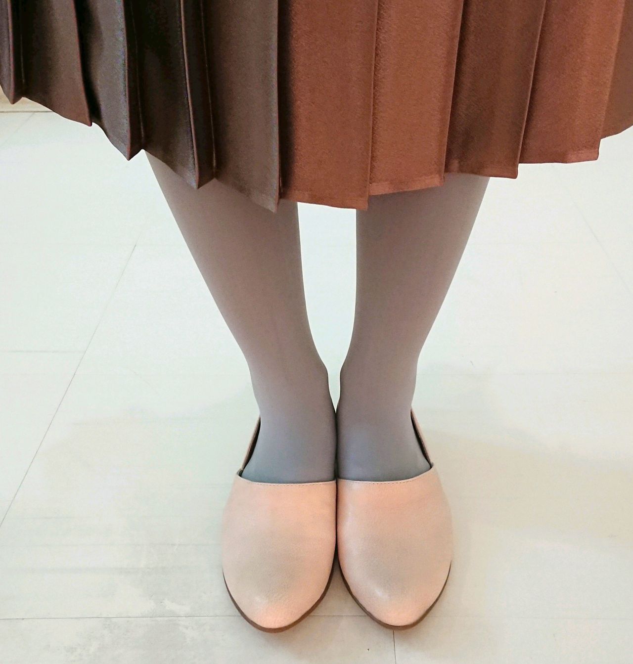 春らしい淡いピンクベージュはカラータイツと相性ぴったりです♪