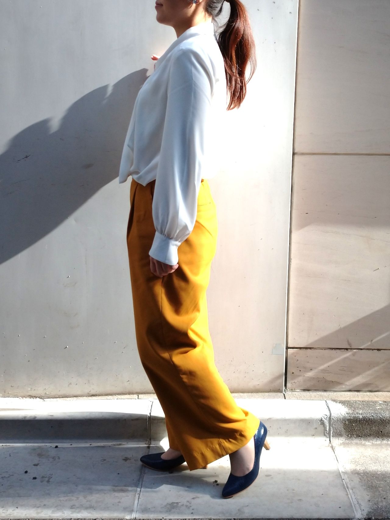 5cmヒールの程よい高さはワイドパンツや広がるプリーツスカートなど、オールマイティに合わせていただけますよ◎