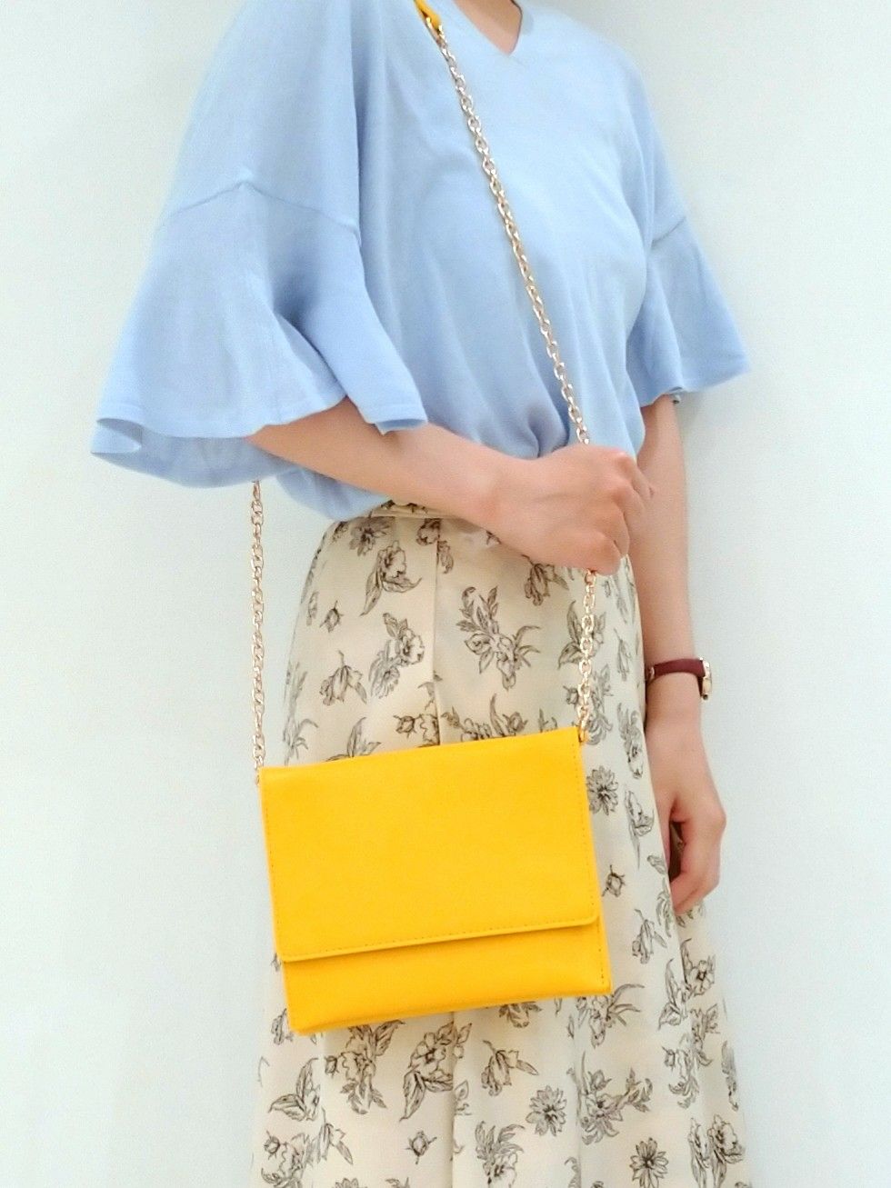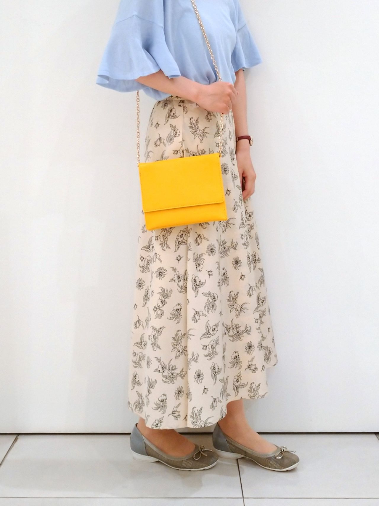 今年トレンドのパステルなブルーとベージュにイエローを合わせて。