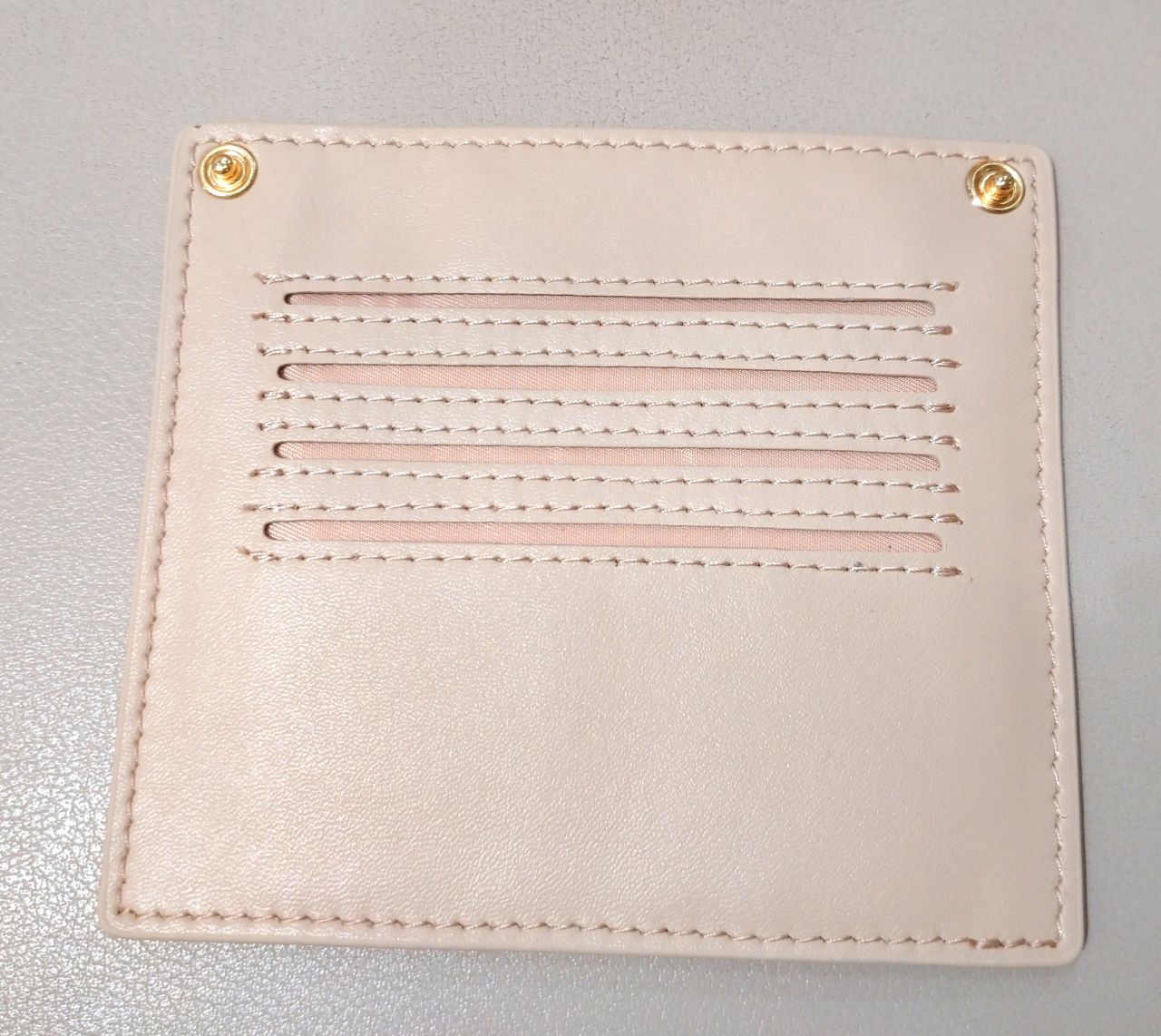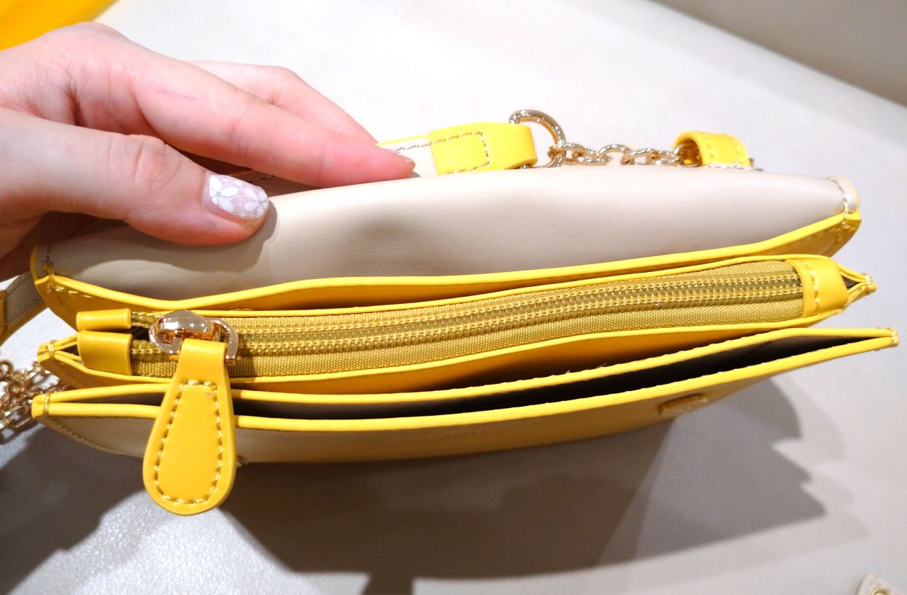 内側には仕切りがあり、カードを入れる場所や小銭もはいるチャック付きです。