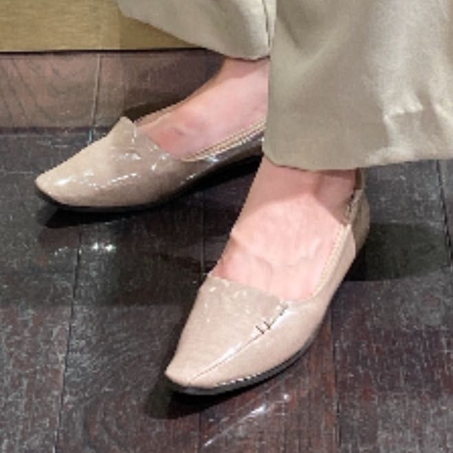 襟のようなかかとのデザインもポイントです。
