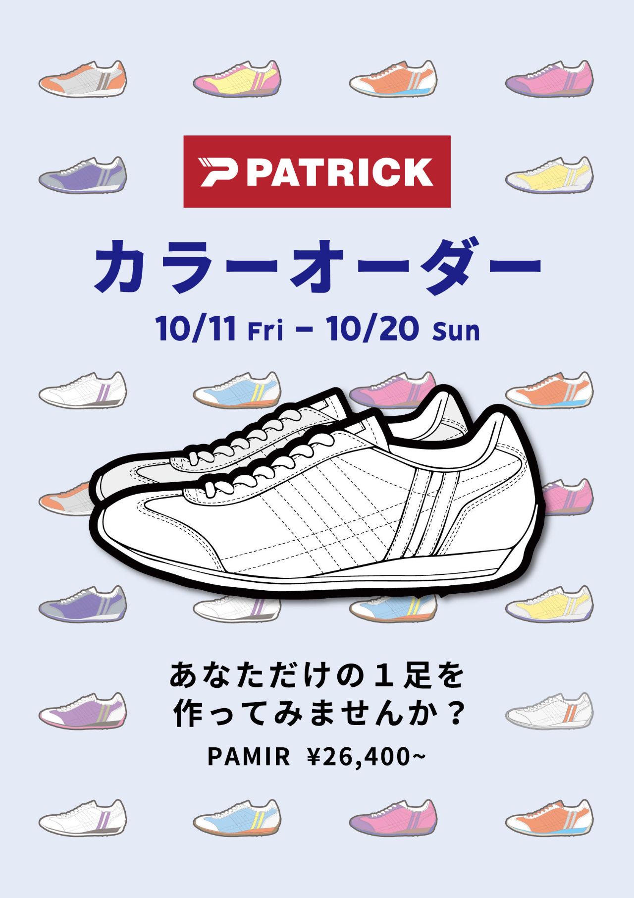 銀座本店B1では、10月11日(金)〜10月27日(日)までの期間、【PATRICK】カラーオーダーを開催いたします!