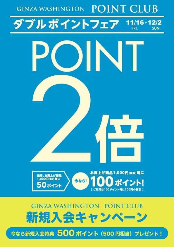 ポイント会員様限定イベント、Wポイントフェアが11/16から開催中です!