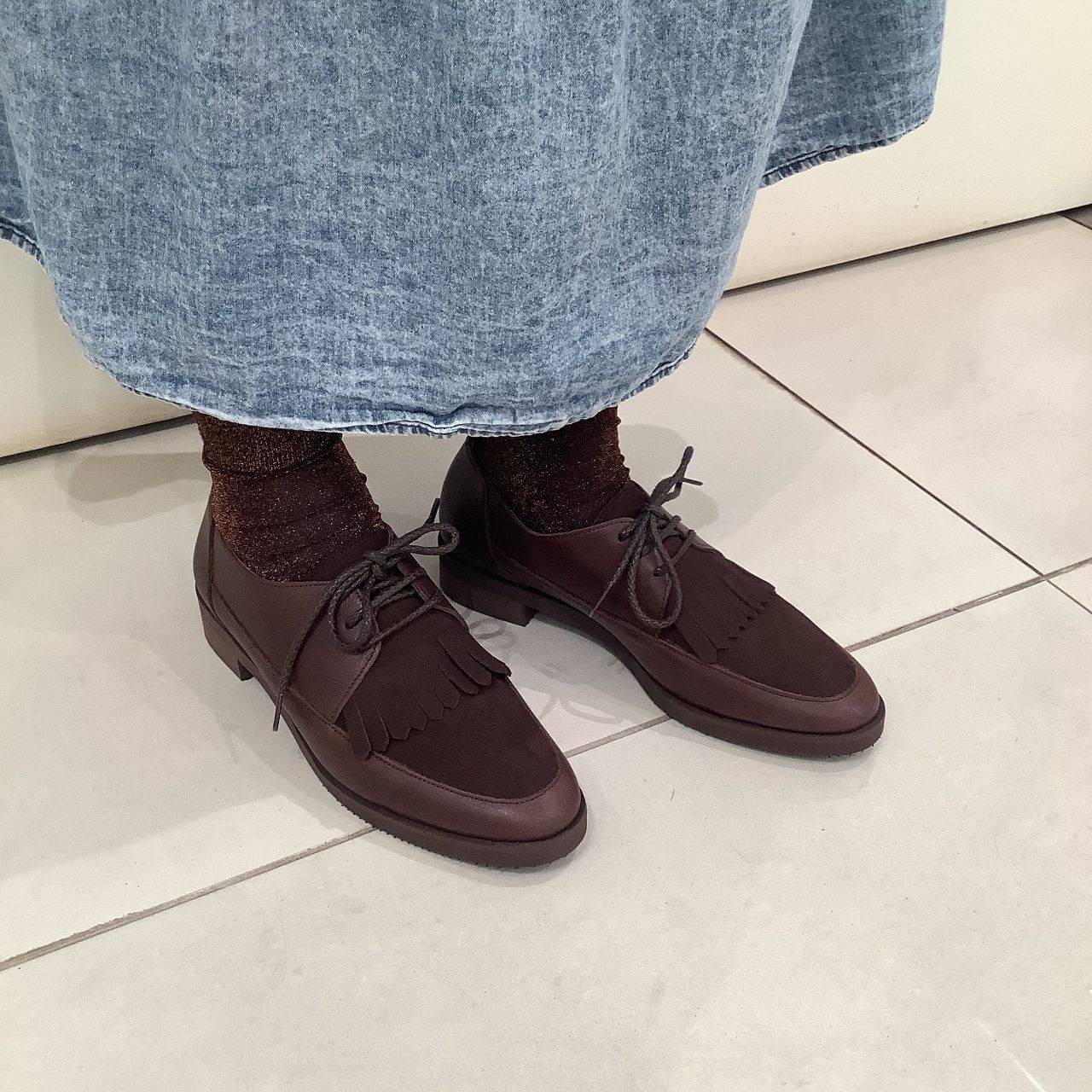 ダークブラウンの着用例ですが、こちらもデニム地と合わせても相性抜群ですね!