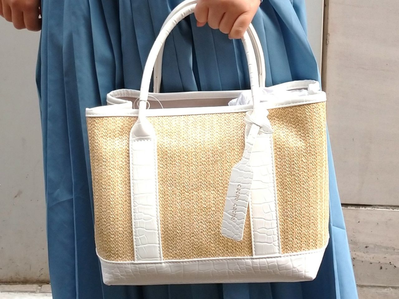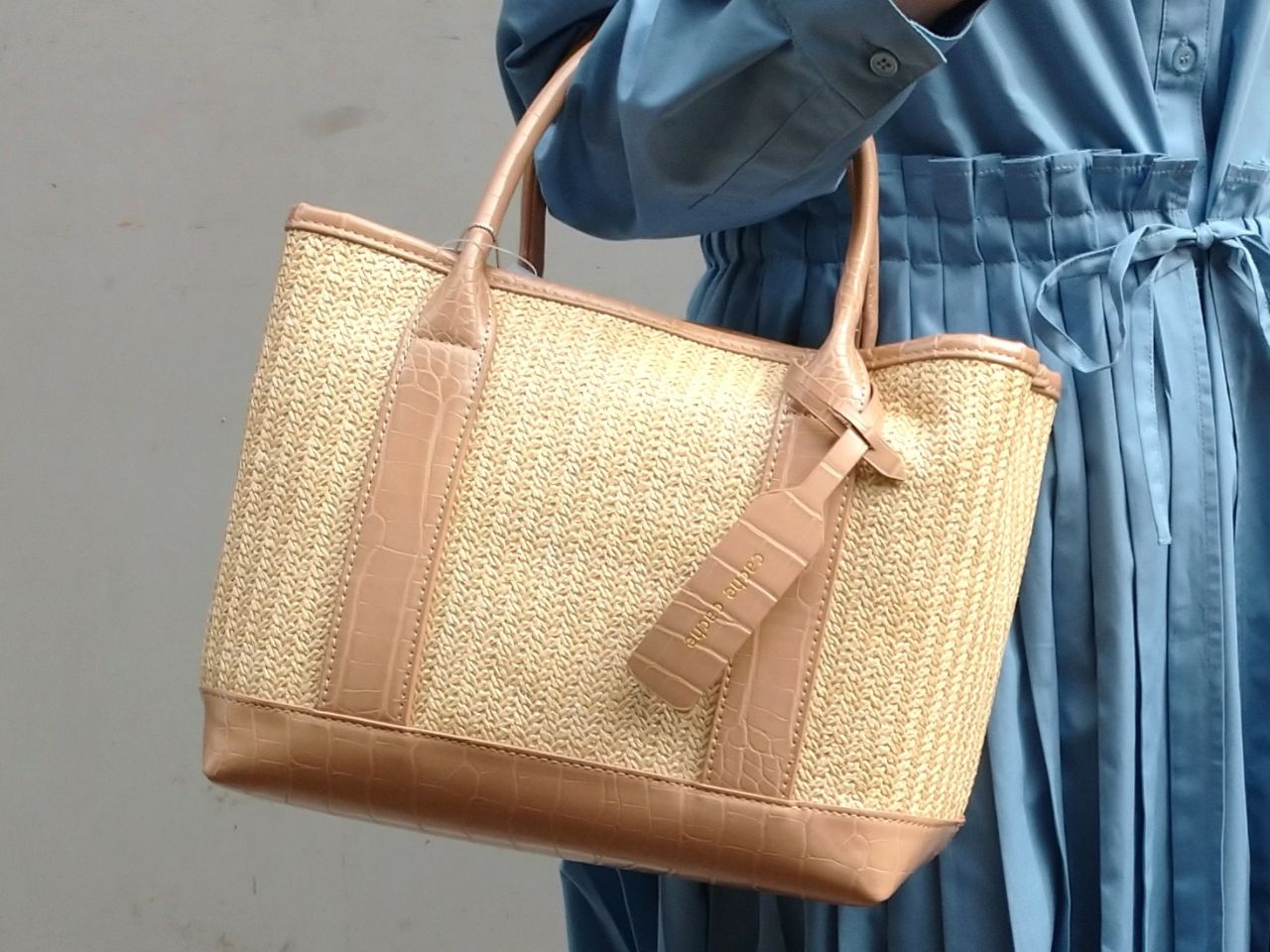 涼しげな雑材風の素材×クロコの型押し風がポイントのトートバッグが登場☆