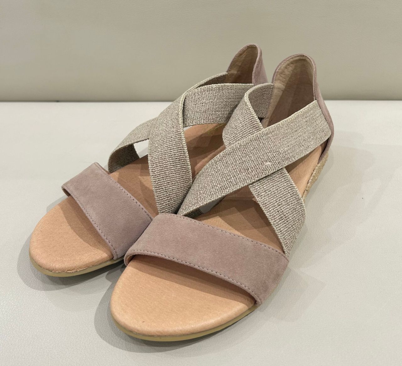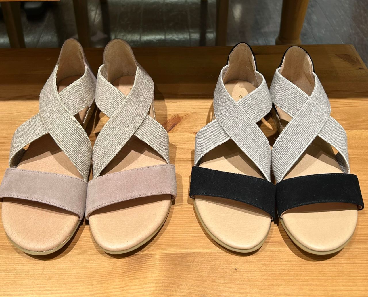 こちらのサンダルはクロスのゴムストラップが足に心地よくフィットするので脱げにくく、歩きやすさも抜群です◎