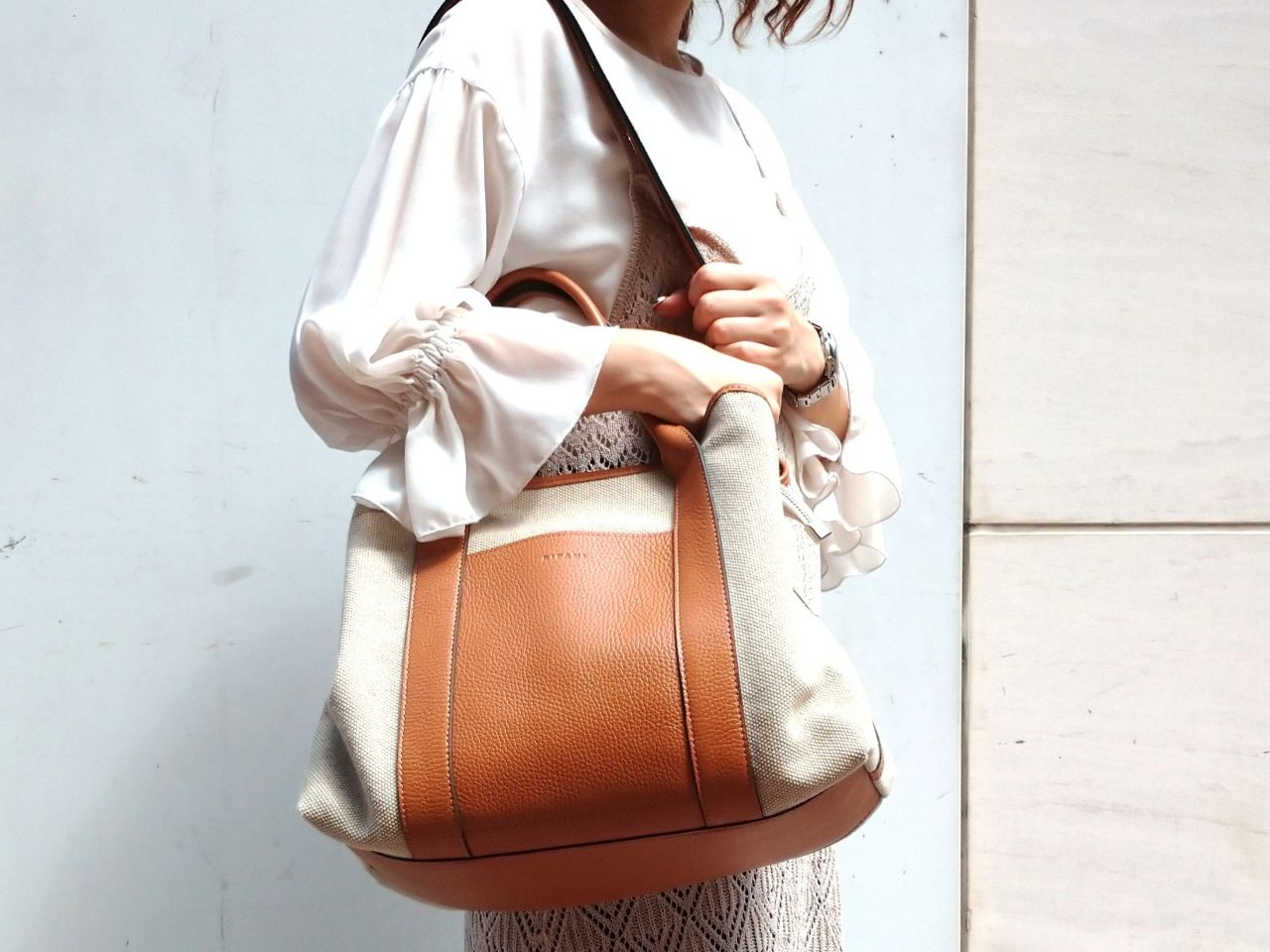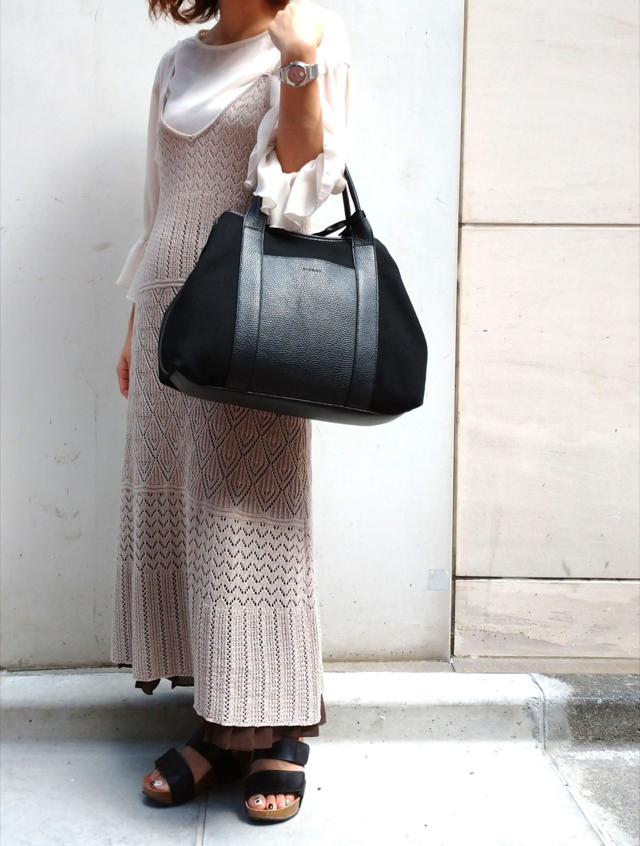 シンプルなトートなので、お出かけ用は勿論、オフィスカジュアルとしても使えます◎