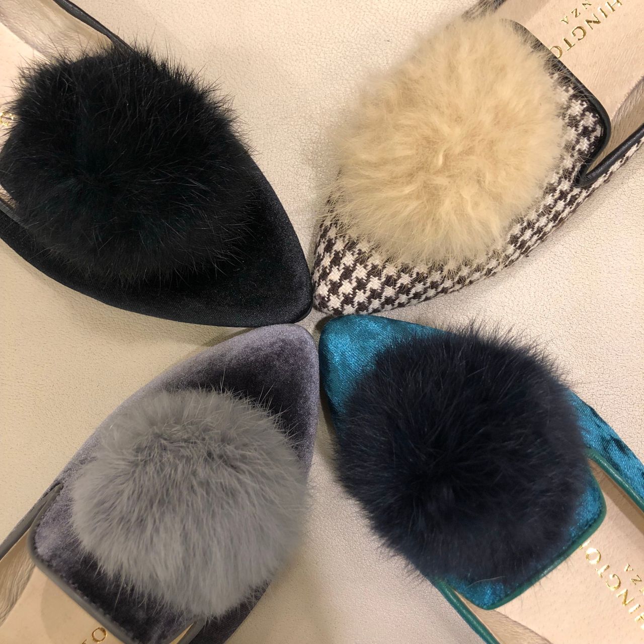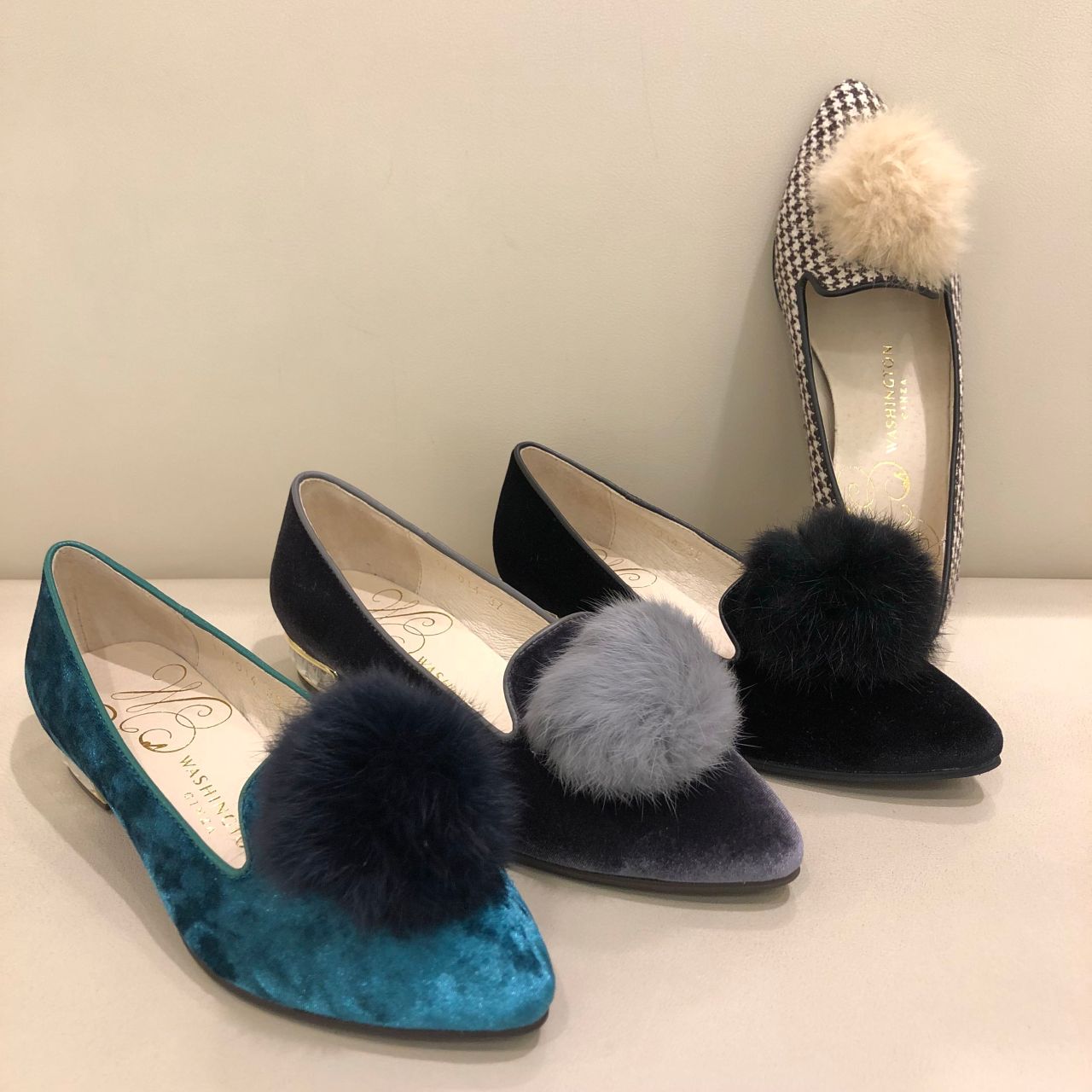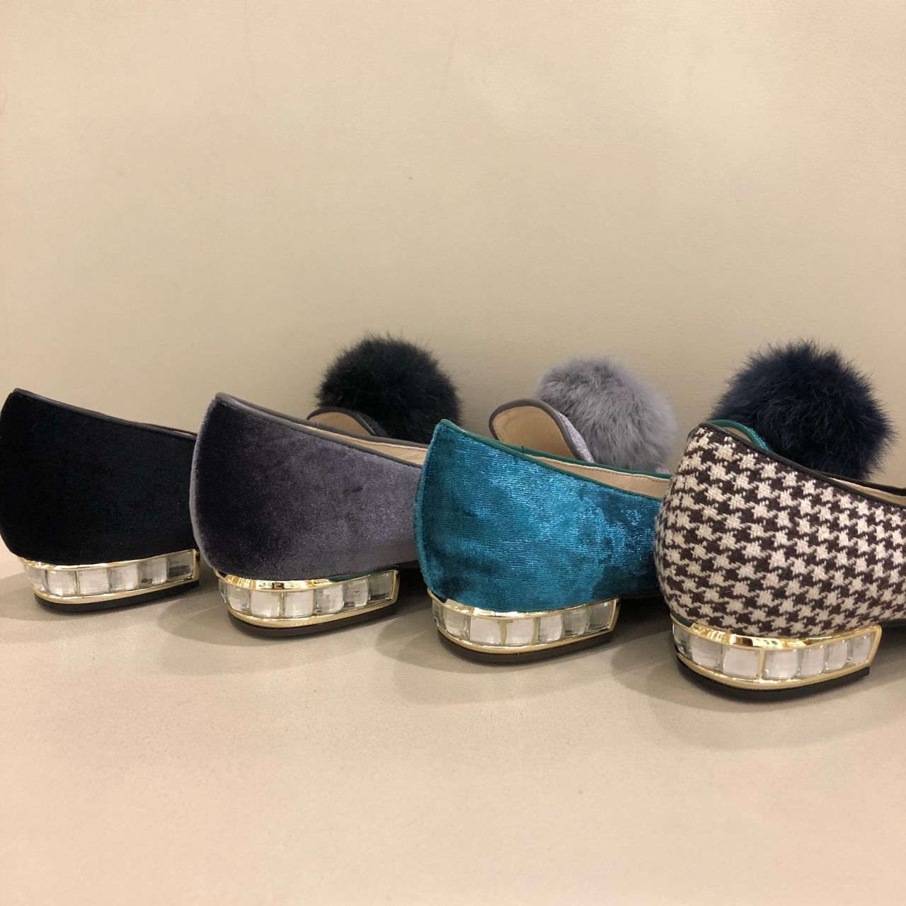 グリーン、ダークグレイ、ブラックはベルベット素材となっております! 華やかな雰囲気が今年らしい1足です☆