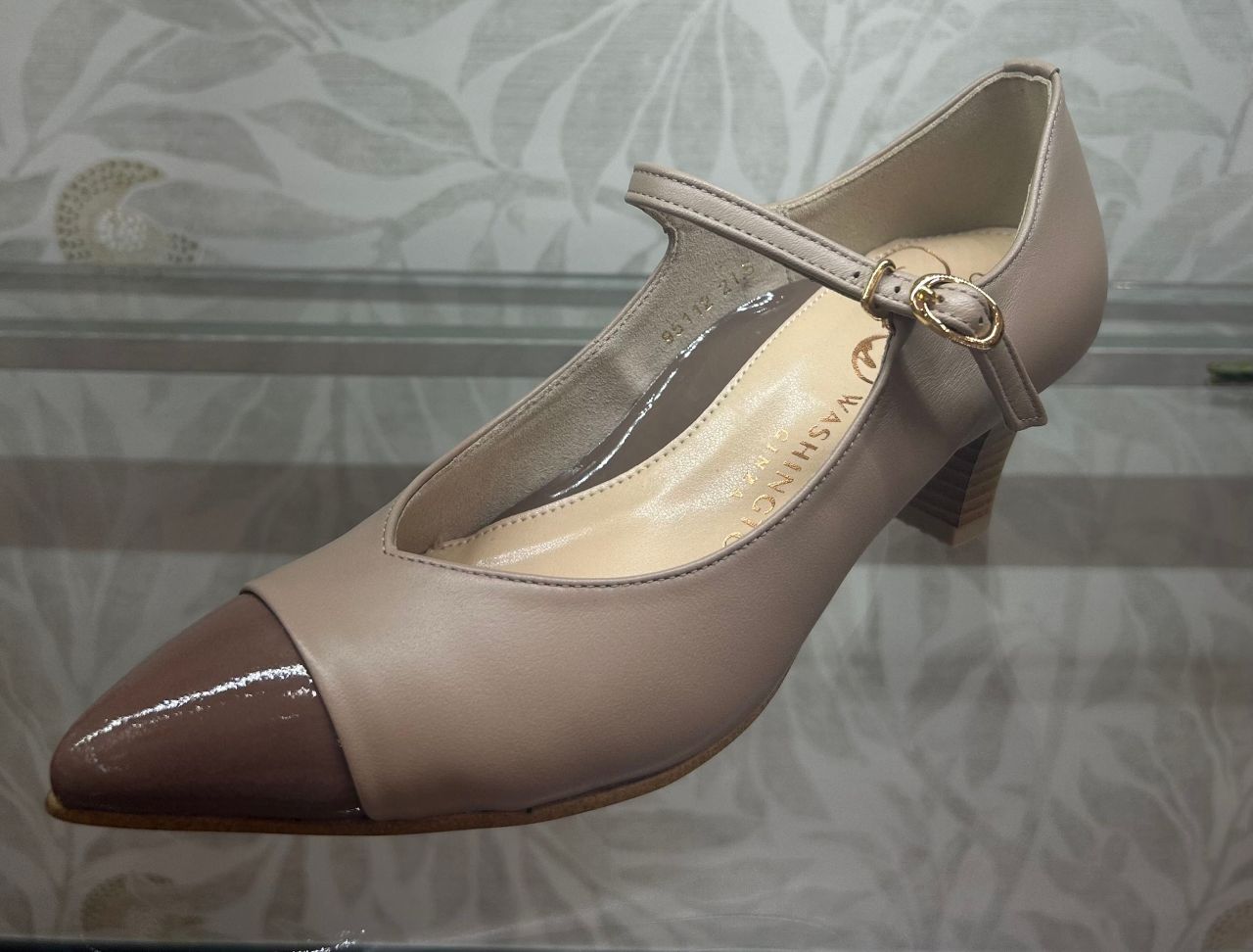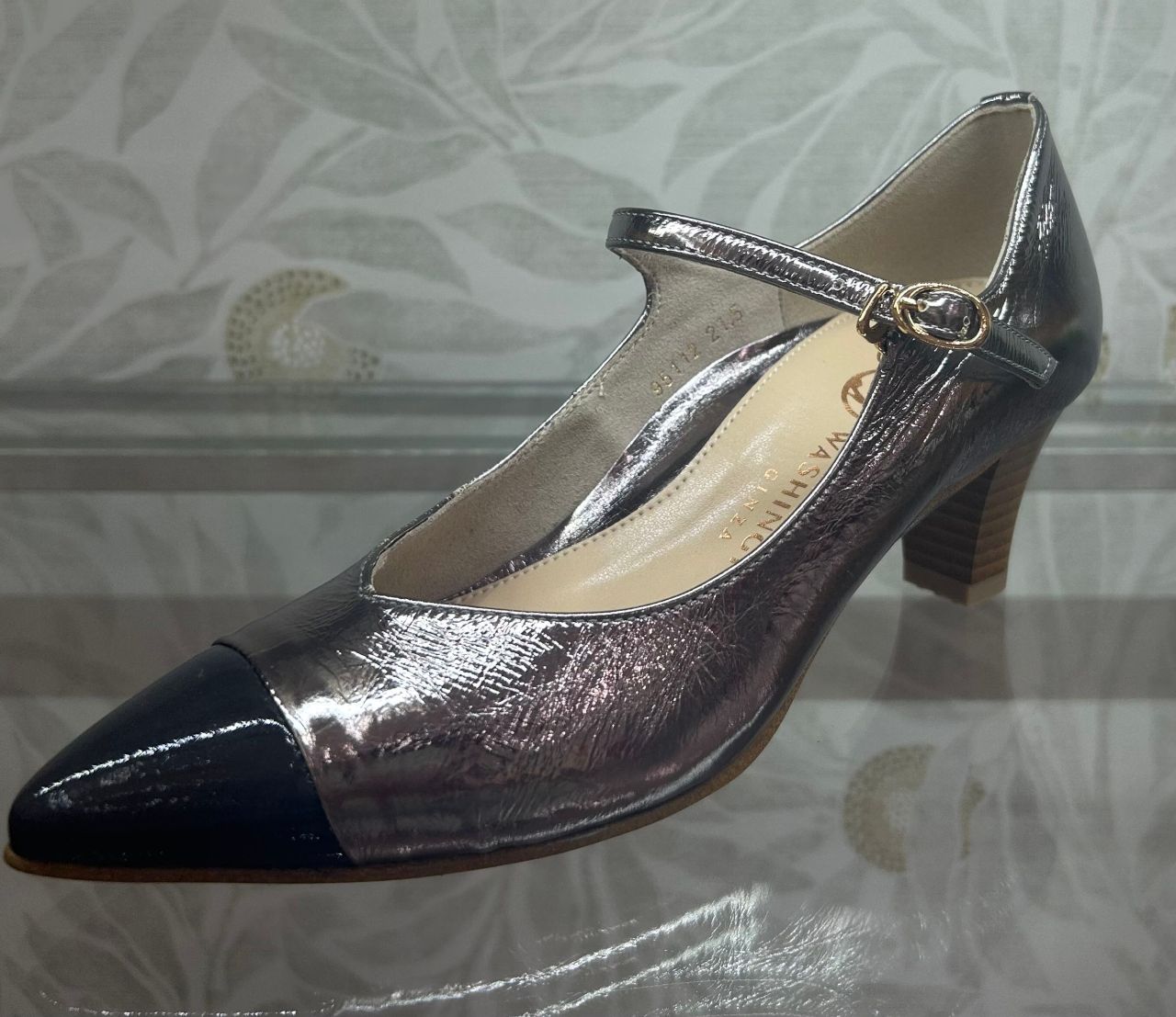 つま先部分にエナメルを使用していて、異素材の組み合わせが上品!