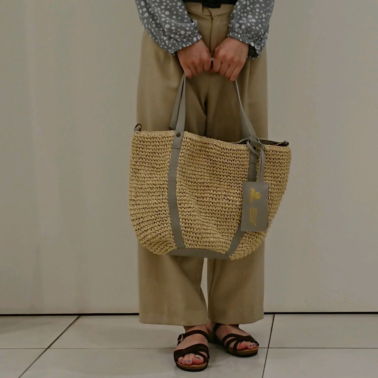 カジュアルテイストながら、細いストライプのデザインが女性らしさも忘れない使いやすいアイテムです(*^-^*)