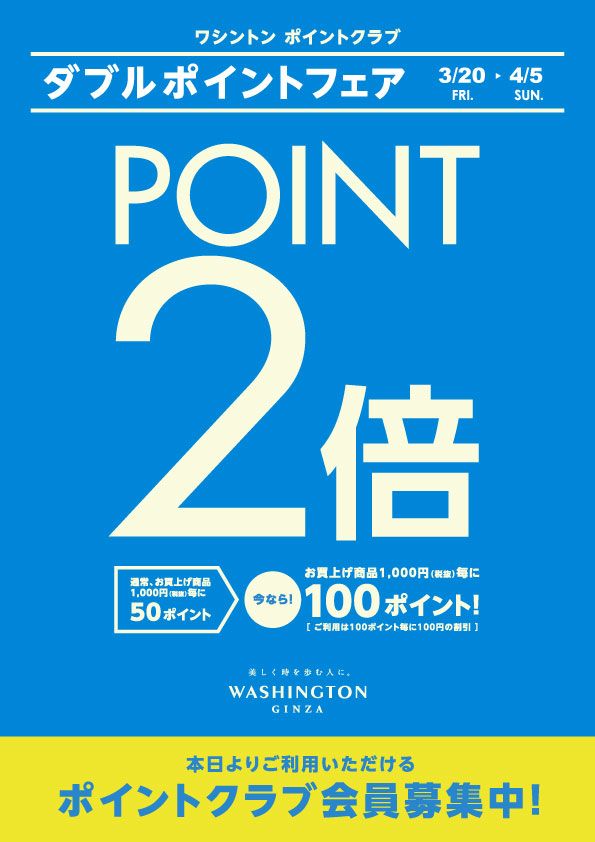 4月5日(日)まで、Wポイントフェア開催中!